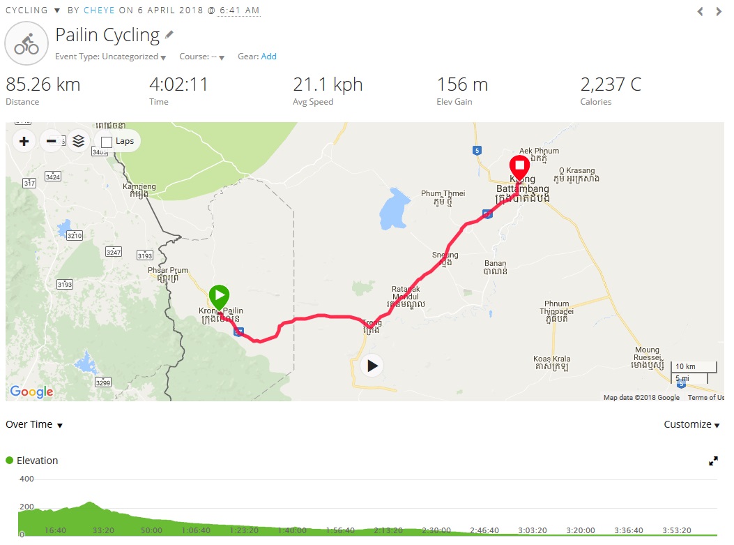 Distance cycled: 85km (Undulating highways, quieter than Thai highways)