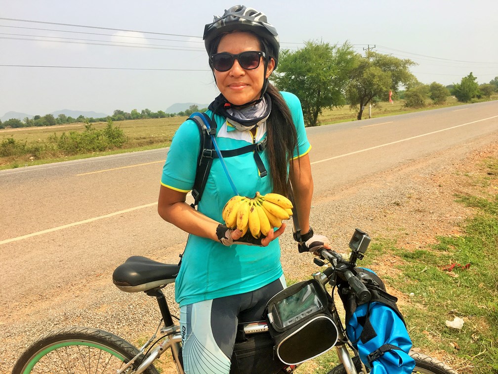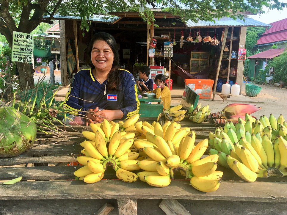 Not too much further down the road we come to a lady selling bananas at a small roadside stall so we stop to buy a bunch.
