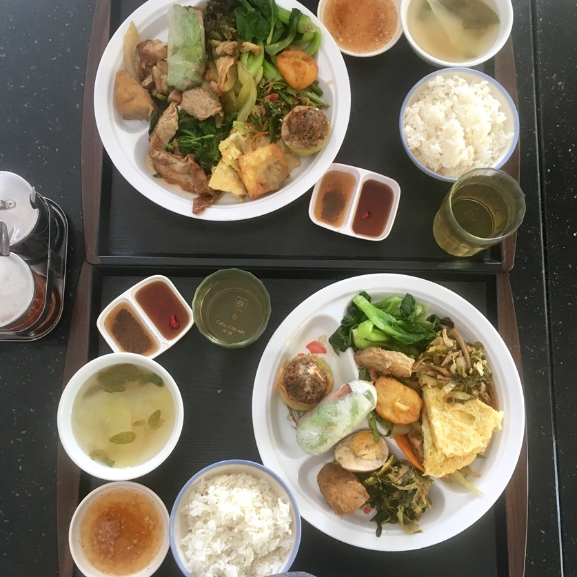 They serve a buffet lunch during the day and ala carte in the evenings. It’s one of those places that charge you by weight, and I’m so hungry I grab a bit of everything and it still only costs about USD $4. The food is so good that we not only go back for dinner but also get a pre-packed lunch for our boat ride the next day.