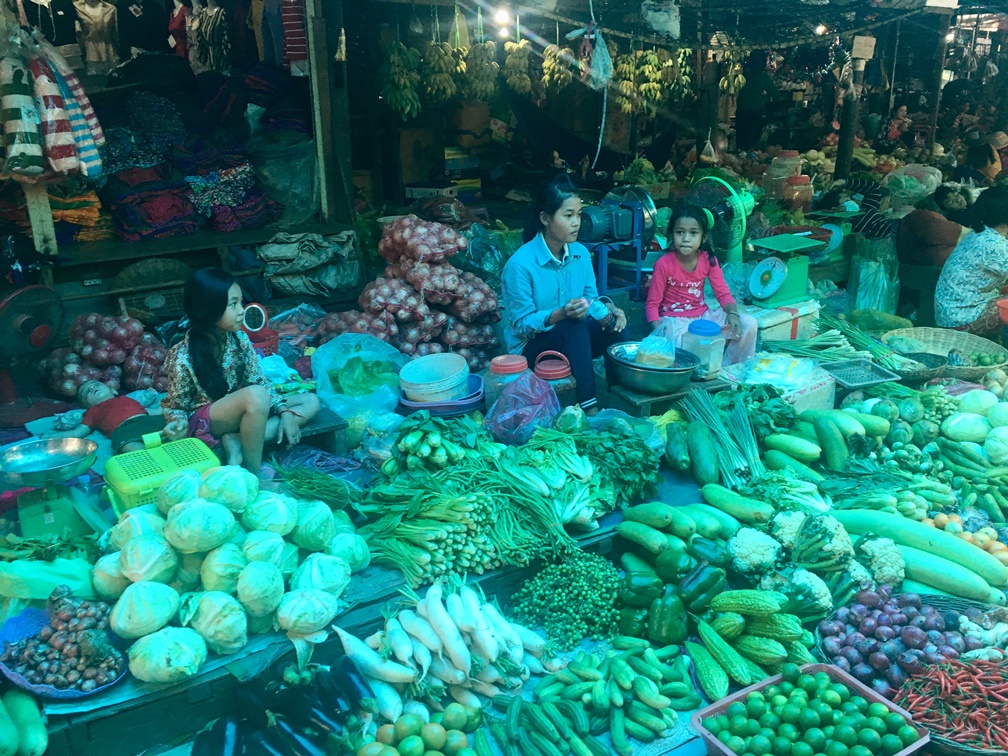 We wander the local markets to look for some lunch. The town looks much smaller than some of the others we have encountered, especially having just come from Siem Reap. There is a big market but most of the shop are selling either produce or watches.