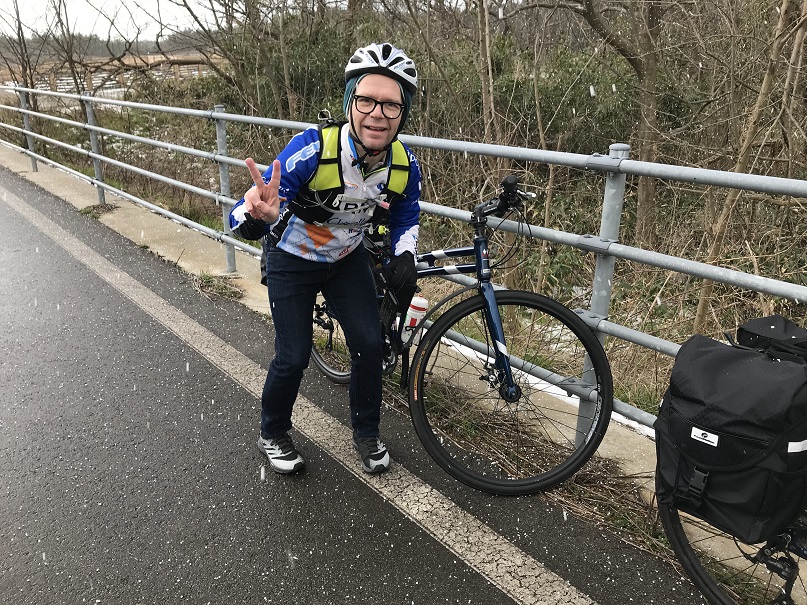 We pick up our bikes from the parking lot and despite the overnight snow they are still dry. There’s snow everywhere and it’s even colder than it was the previous day with a top of 4 degrees on the weather forecast. It’s currently about 2 degrees so this is probably about as warm as it’s gonna get.