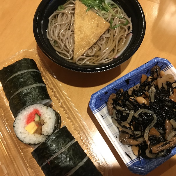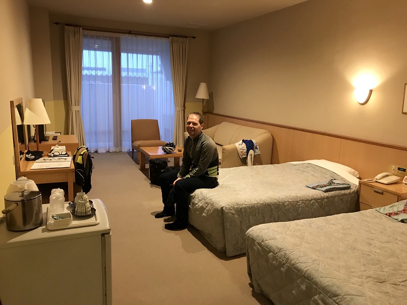 We continue the final 5km and find our accommodation just off the main road. As I check in, my hands are still so cold that I can’t hold the pen properly to fill out the guest register form at reception so the staff member assists. The biggest relief is the convenience store and supermarket are just across from us so we can grab some bento boxes for dinner. My savour!