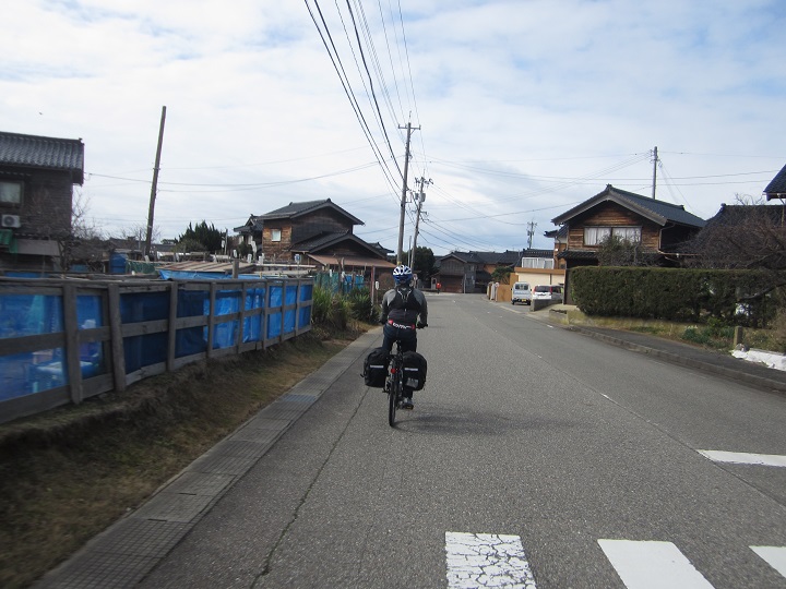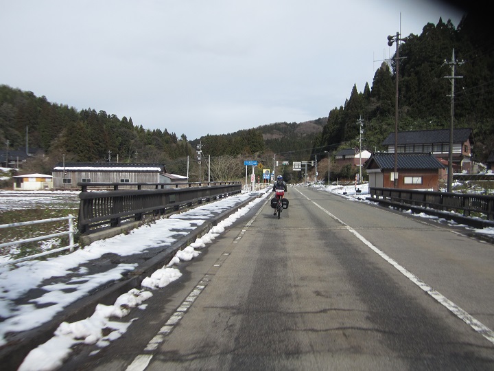 We emerge from the tunnel to a wonderful decent that takes us all the way into Wajima town. It kicks off with a snow covered backdrop and the snow slowly disappears the further down we go.