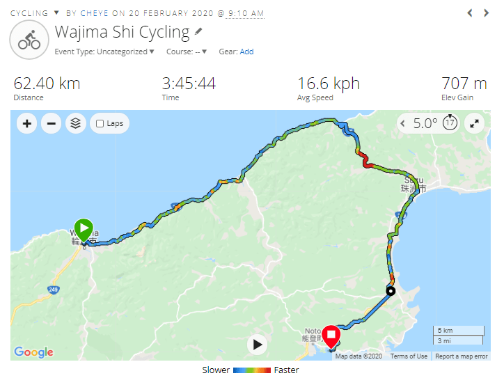 Distance cycled: About 70km, mostly following the coast via Suzu