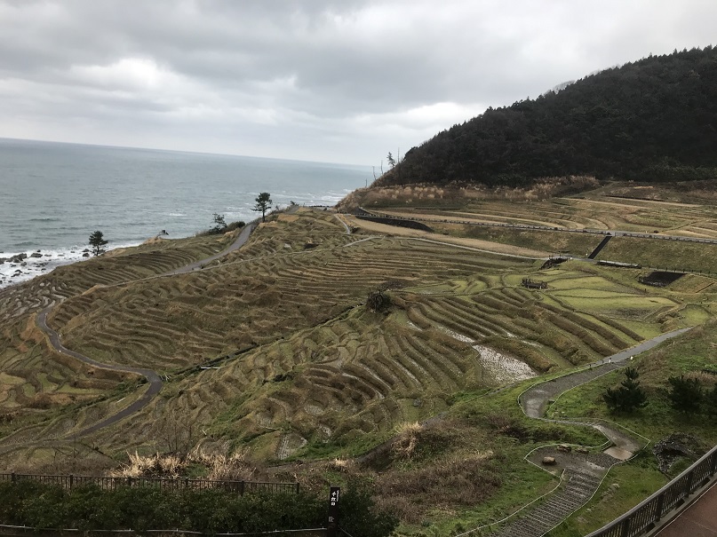 About 11km down the road we come to the Shiroyone Senmaida Rice fields.