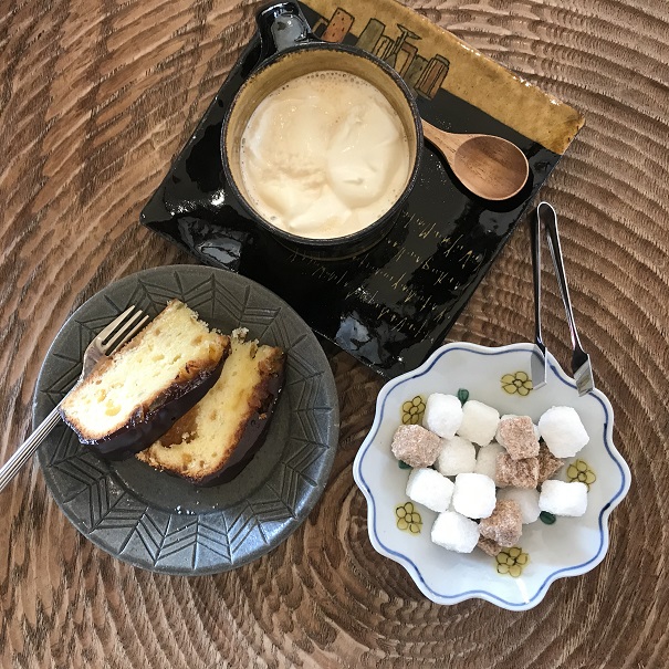 Cheye gets a Vienna coffee and yuzu cake while I get a lemon cake.
