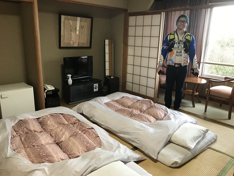 The place also has a large onsen. Most of the other places we stayed at on this trip were empty so we generally had the onsen to ourselves. This place was a bit different as there were quite a few people staying here. The female onsen had two other ladies using the steam room and Cheye reports that the male side had about a dozen Japanese men enjoying the spa. The bath is the perfect temperature and I could sit in it all day but hear that 10-15 minutes is recommended. We get back to our room as the sun is setting.