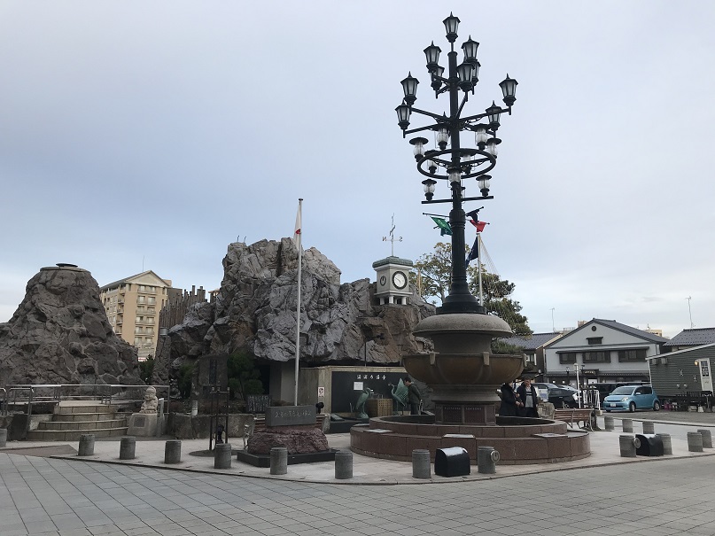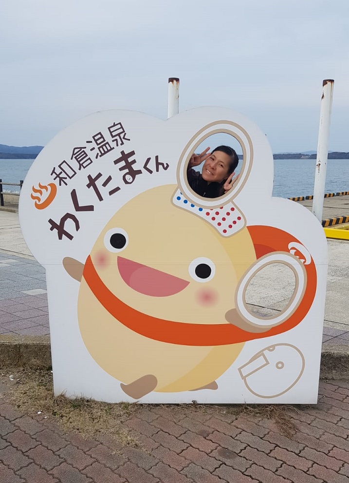 We wander a bit further towards the water and discover Wakutama aka Egg Boy, the town’s local mascot.