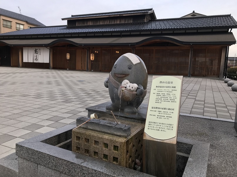 A bit further down the road we find the famous Wakura Onsen. There is a small Wakutama statue out the front with him carrying his onsen tamago, which are eggs cooked in hot spring water.