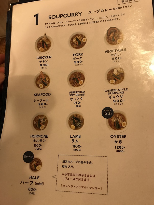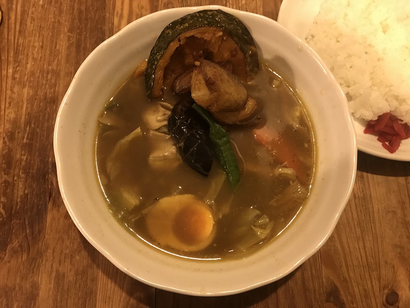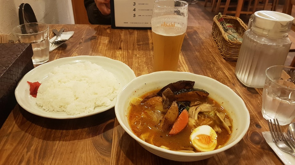 After settling in we head out for a walk and plan to drop by Melon Pan Ice (Melon Bread Ice Cream) but they’re closed, probably because it’s so chilly outside! We decide to head straight to dinner at Soup Curry Maruna. The walk is cold and windy, and gets darker the closer we get. In fact it’s the perfect weather for soup curry, which we have been wanting to try for a while.