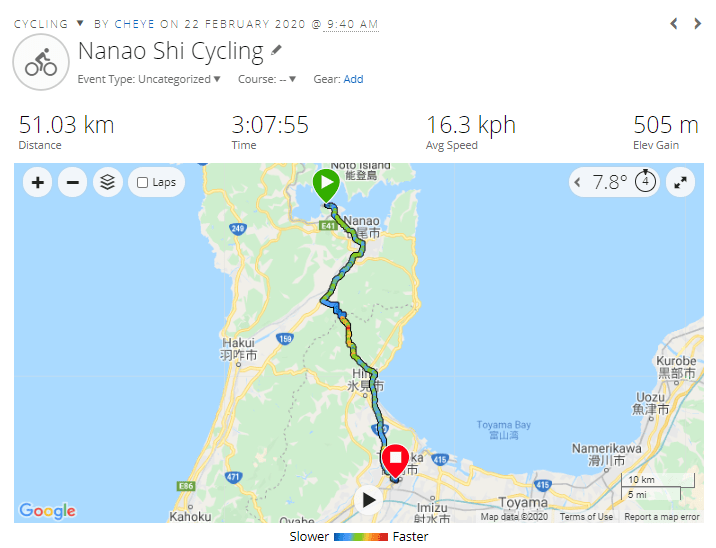 NOTE: Looking at the map below, we realised later that we could have just followed the coast all the way to Takaoka. For some reason our maps weren’t giving us that option and kept on telling us to go over the mountain, but when we searched for directions in reverse out of curiosity it took us down the coastal road.