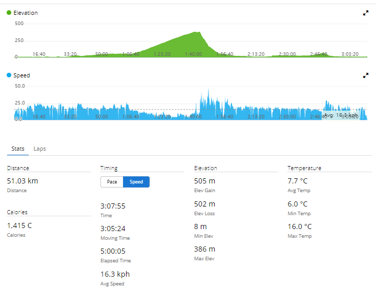 Distance cycled: 55km, mostly flat except for a massive hill at the midway point up to about 20% gradient
