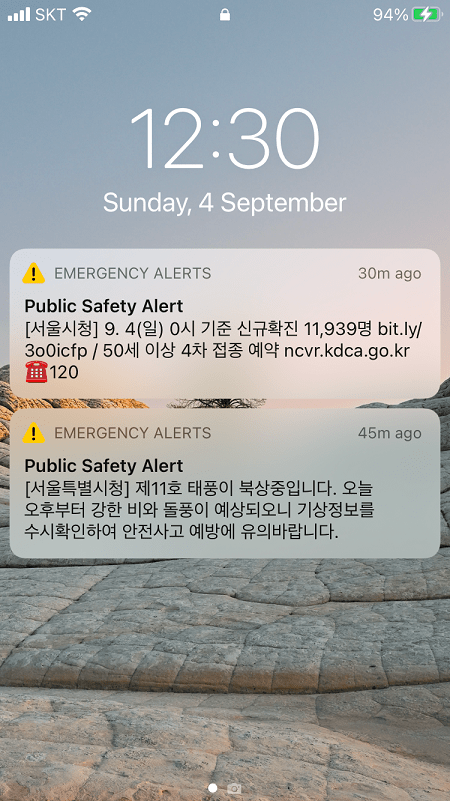 Throughout the day we start receiving public health alerts on our phone. Some are about the typhoon, others give COVID-19 updates and one even gives information about a teenage boy who has gone missing.