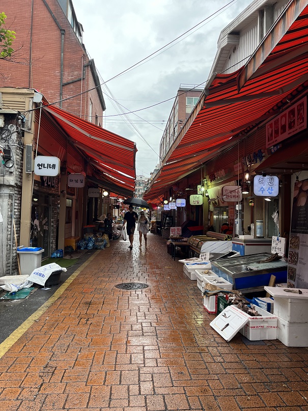 Our first stop is a traditional market in Gangnam, which we come across by accident down a side street. The great thing about South Korea is there is so much to discover when you wander off the main roads, as well as the upper levels of buildings if you look up.
