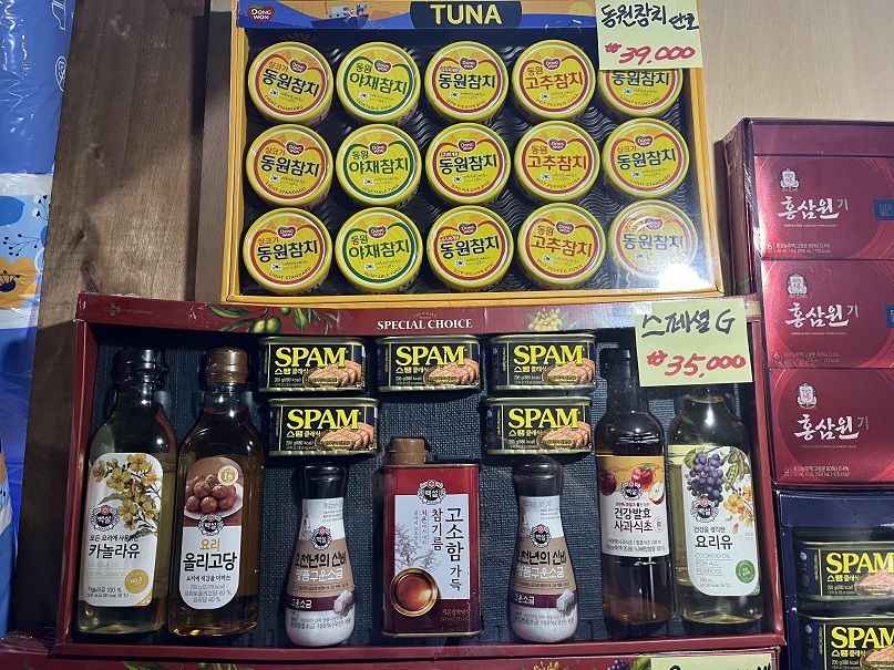 We have plans to visit Dessert 39 for some bingsu (Korean shaved ice) but they are closed. Maybe another day. On our way back we pass by a local shop selling Chuseok hampers containing things like Spam and giant fruit.