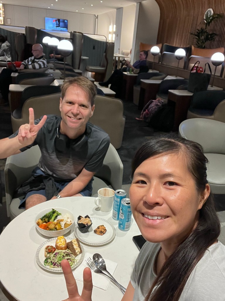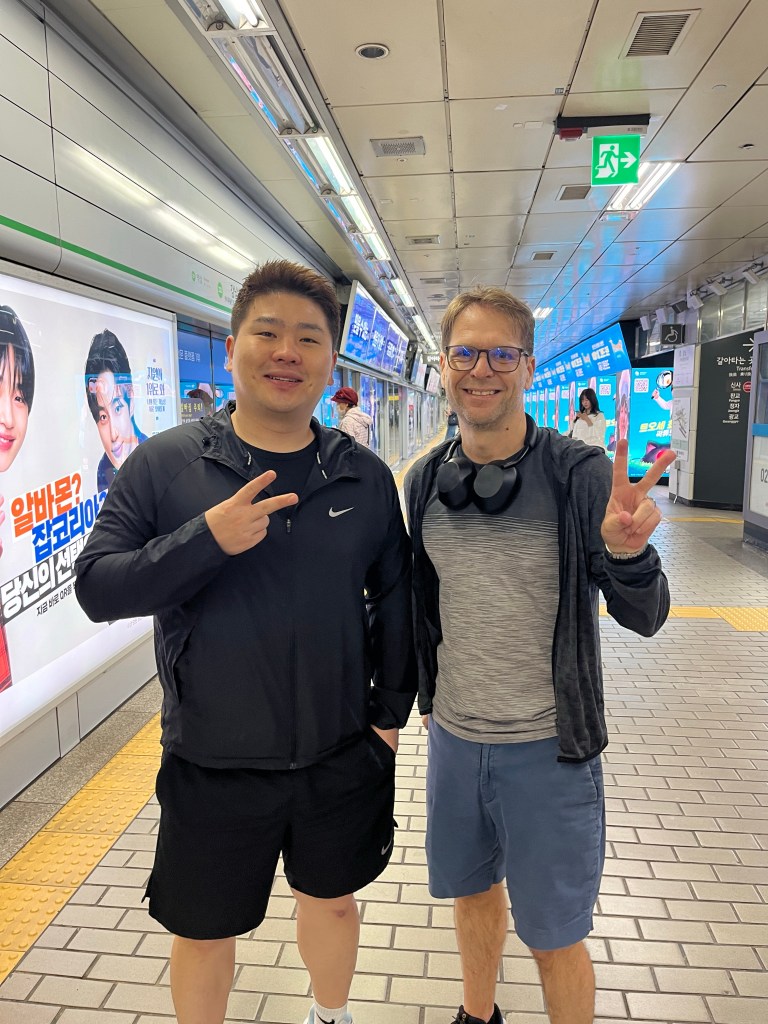 After two business class flights thanks to frequent flyer points, we arrive in Seoul a little after 7am and decide to catch the airport bus. We buy the bus tickets 2 minutes before it’s due to depart and spend the next 90 seconds sprinting with our luggage to the bus, not realising the platform is right down the other end of the terminal. Note to self, don’t buy buy bus tickets if they are due to depart with less than 5 minutes to spare!