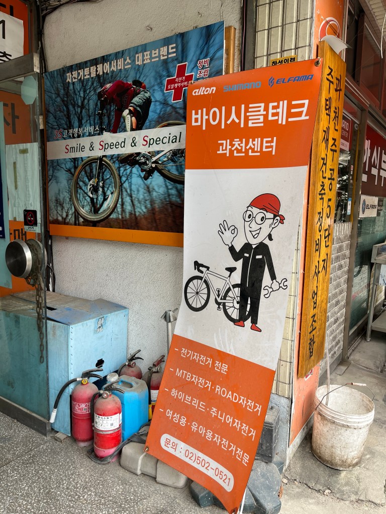 The bikes are being serviced at a little bike shop in Gwacheon so we make our way there via subway. Two of the panniers we left in Seoul have gone missing so we will need to source some more to replace them.