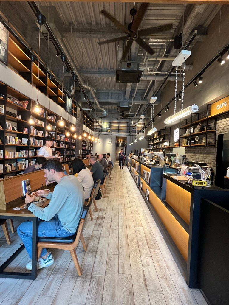 The accommodation is super nice and has a lovely book cafe so we stop in for a coffee before heading out.