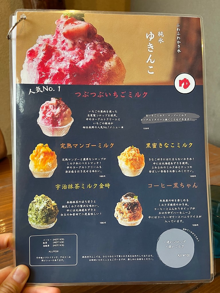 We still have a bit of time before check in so we stop by Yukinko, a dessert place selling kakigori (Japanese shaved ice). We decide to order one each as they seem pretty small compared to other places where we would normally share one. we decide on the strawberry and apple pie flavours.