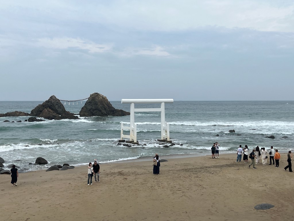 Not far down the road are the Futimigaura Couple Stones, which is a rock formation in the sea just off the coast. There is an archway installed so people can take photos but we notice this creates a massive line-up, and if anyone likes a good line-up it’s the Japanese.