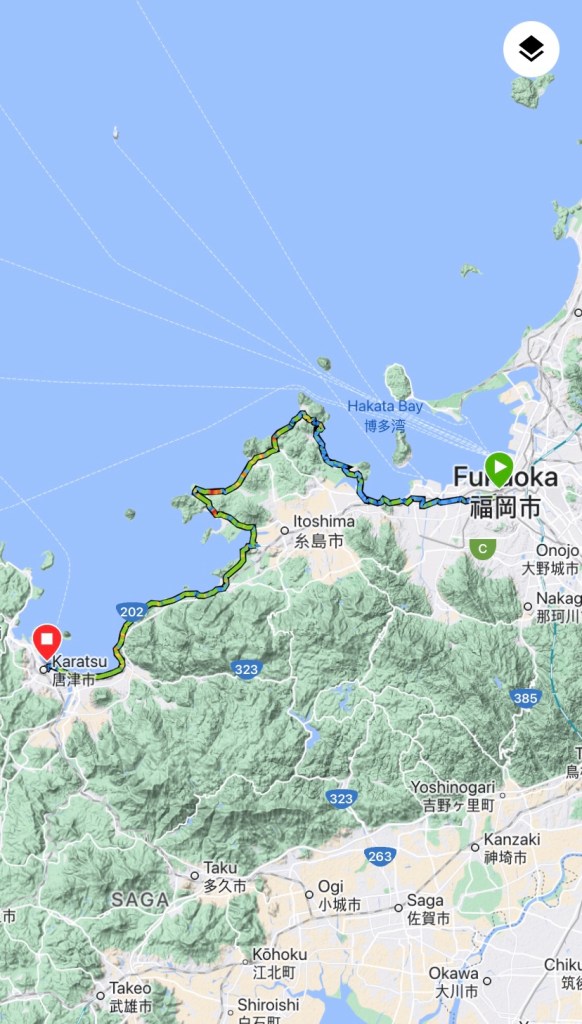 It takes a good hour or so to finally get out of the traffic of Fukuoka and get to the coastal road.