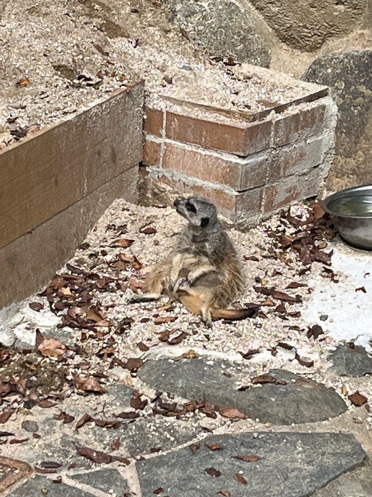 You can see animals including monkeys, birds, goats, peacocks amongst others. Like this chilled out meerkat below.