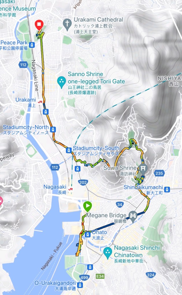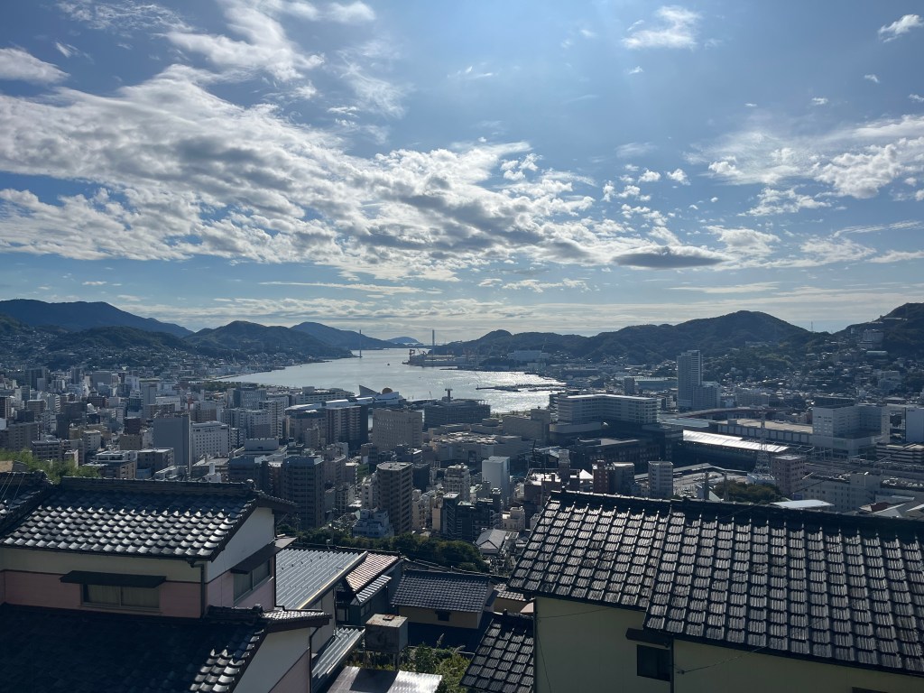 As we ascend Unusual Road you can see amazing views of Nagasaki. We notice the it’s still very green despite being the middle of Autumn when the leaves should be orange and starting to fall. We’ve heard quite a few people saying that Summer seems to be getting longer in both Japan and South Korea.