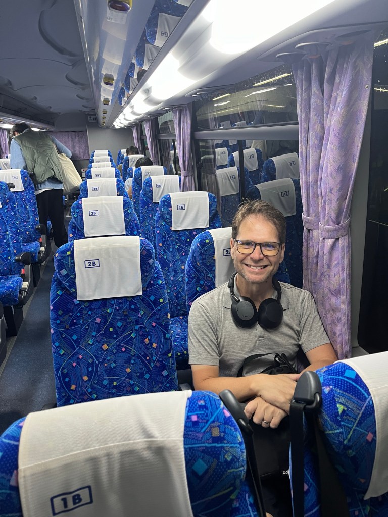 It’s raining! Luckily we prepared for this and have purchased tickets to Kumamoto by bus. Our bus departs at 10:40am and cost ¥4200 each.