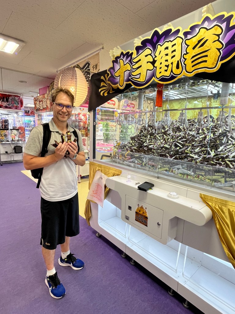 We wander around a bit more and decide to visit all the different arcades in the mall. Cheye plays a claw machine that has 10 claws.