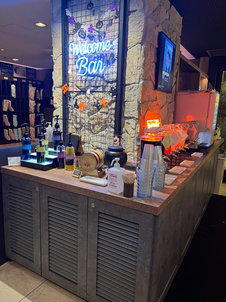 We check-in at exactly 3pm. There is a welcome bar where you can make your own alcoholic drinks for free. All guests are very well behaved and served themselves one, maybe two drinks at most. Imagine if this were in Australia…