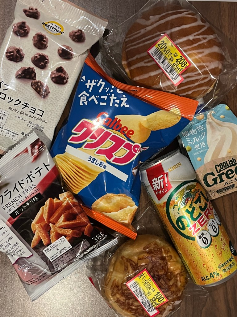 We walk the bikes to the bus station and pack them away inside the terminal just as the rain is starting. As it’s raining pretty hard, we are limited to the konbini inside the station to grab some breakfast.