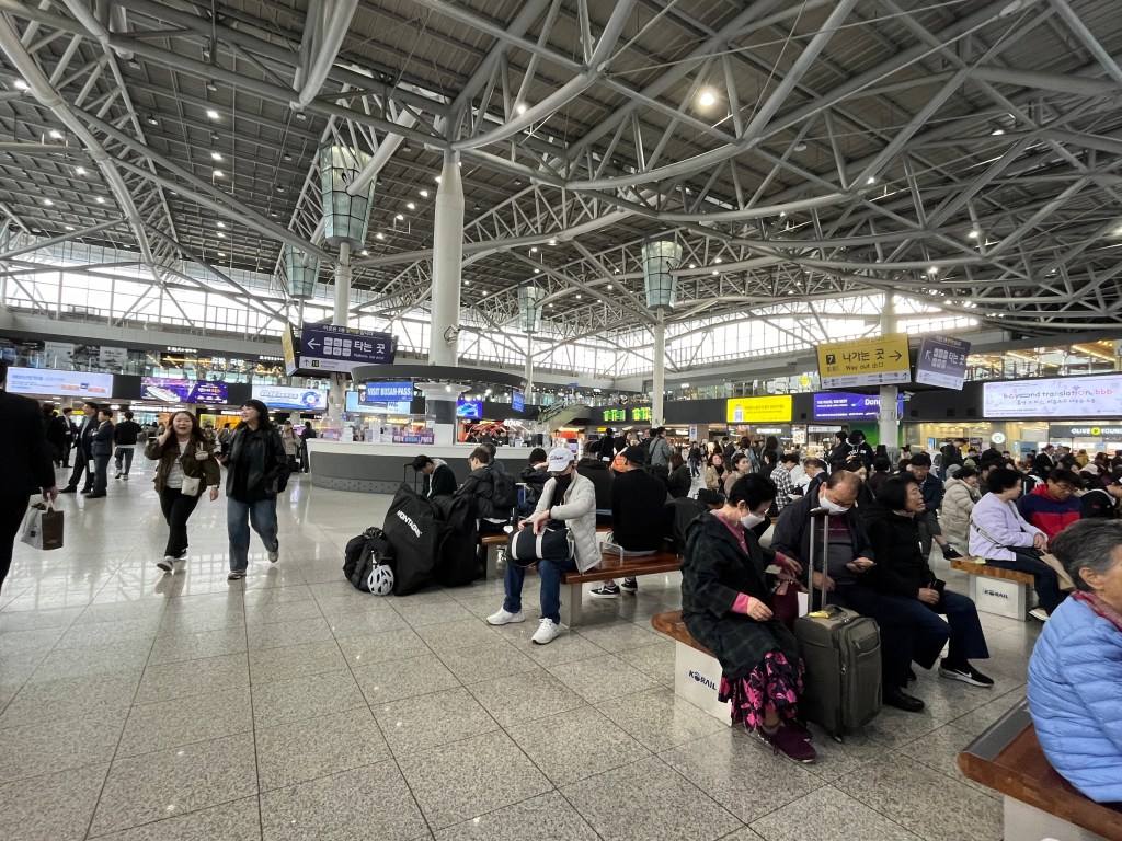 We make our way to Busan station, which is conveniently located across the road from the hotel. Our bodies are a bit bruised and battered after having lugged the bikes to the hotel from the ferry terminal last night and we added to that this morning having the drag them across to the station once more.