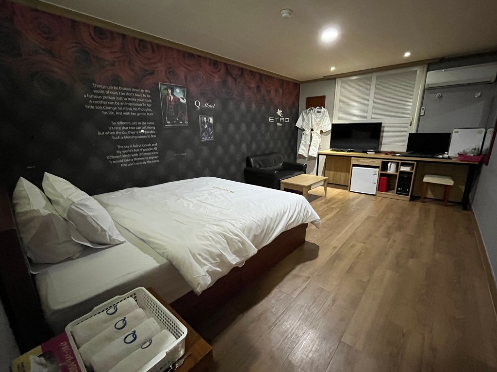 We make the journey towards our motel, which is a quick 5km back along the water before turning off into the traffic. It turns out we’ve booked a love motel (again). There’s nothing wrong with love motels – they’re clean and cheap but often very tacky.