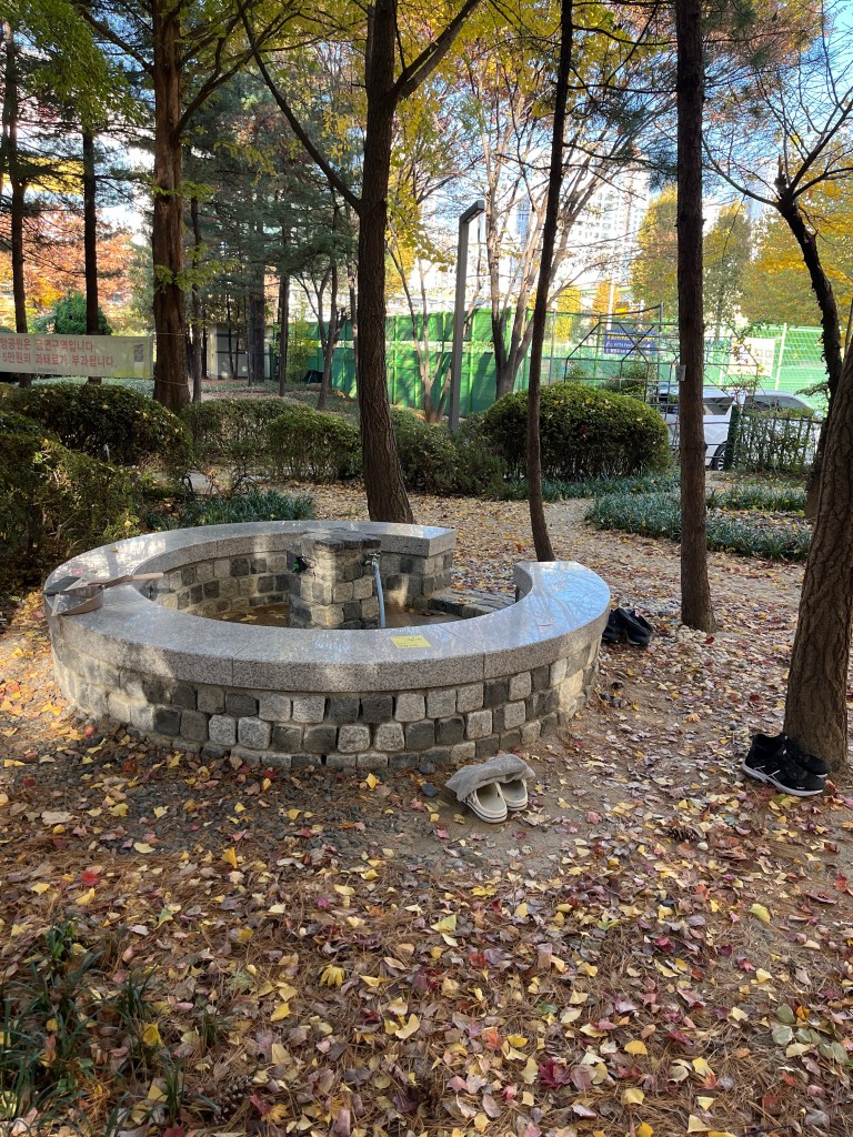 There are still two more bakeries on our list (‘Bacorporation’ and ‘Gontran Cherrier’) but we are all breaded out so we will save them for another time. On our way back to the station we notice a trend in Korea: barefoot walking. There are many locals walking barefoot through the park along dedicated trials, complete with an area to leave your shoes and wash your feet afterwards.