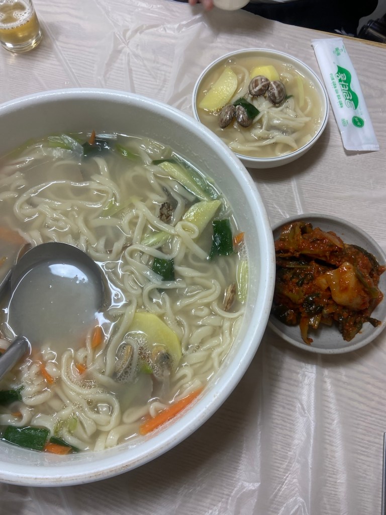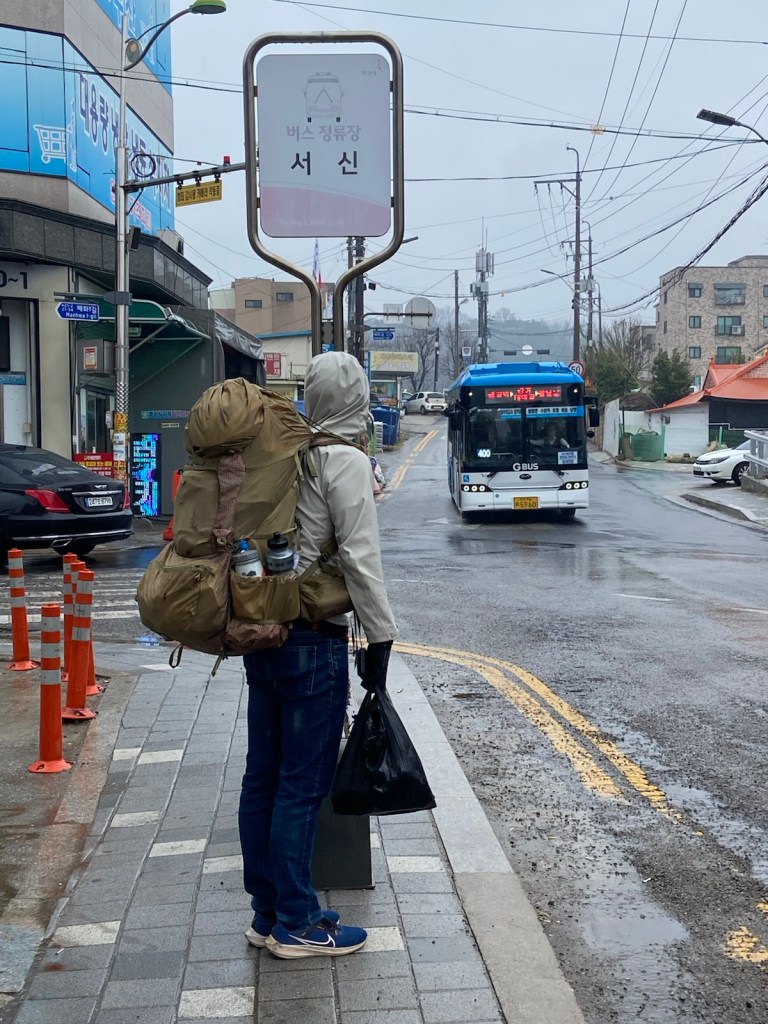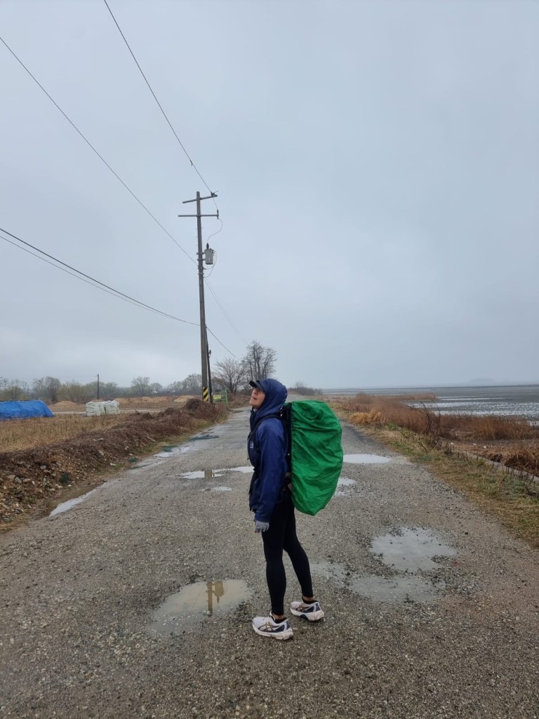 Day 9: Saturday 5 April. Rain! ☔️ It was supposed to be a 22km hiking day but we ended up only doing 12km as it was raining for the first half of the day. We spent most of the morning at 제부도 제빵소 bakery cafe before catching the bus part way. The public transport system in Korea is so good, even in these remote areas. The good thing about these hiking courses is you only have to hit three checkpoints to complete each course so we skipped a bunch to save some time 🚍 We spent 10km hiking through the wind, rain and cold along what felt like an endless straight seawall before turning off to our accommodation 발리호텔 Bali Hotel. Our friend Junsik, who lives not too far away, met us that evening for dinner but the only place open was a seafood and 칼국수 kalguksu restaurant. We are excited to have him join the hike tomorrow! 🥾