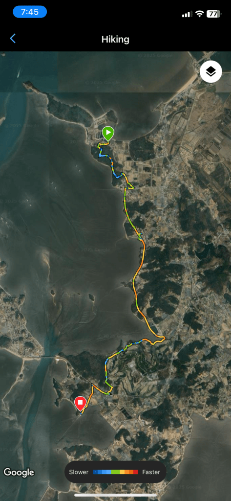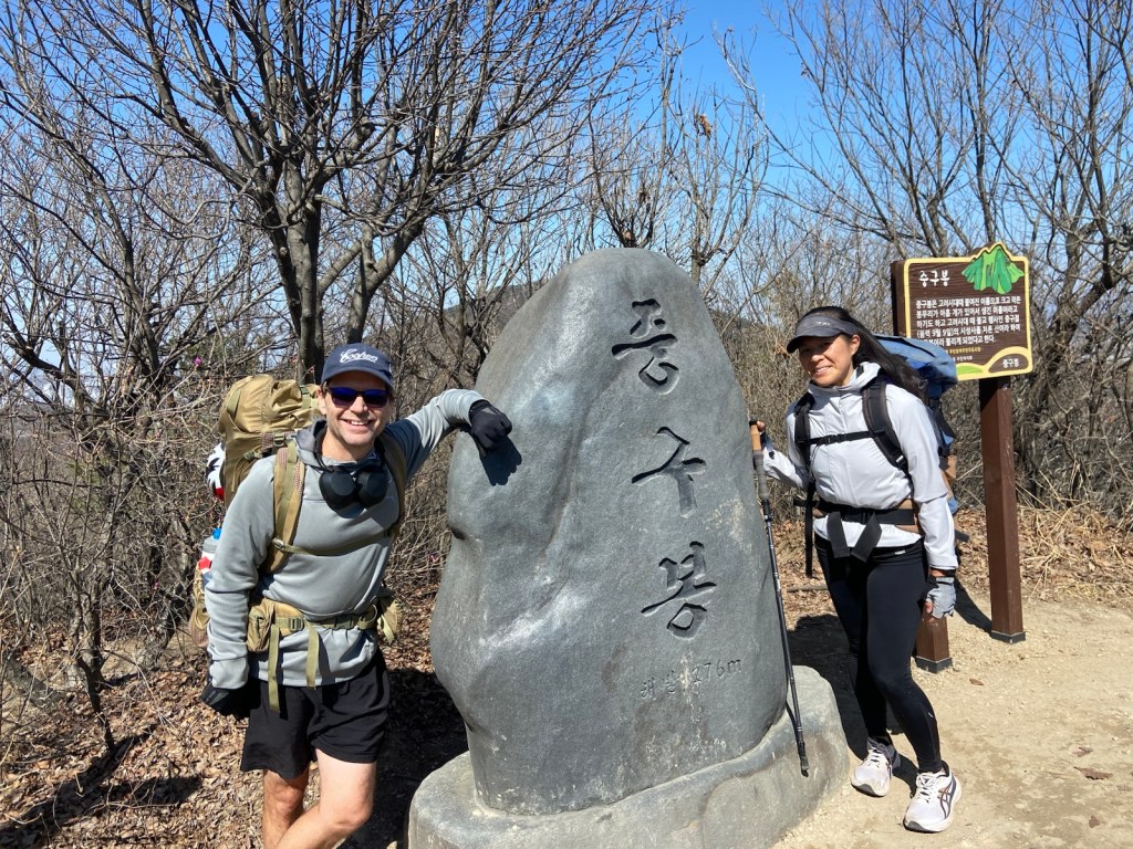 Day 1: Friday 28 March. First day of hiking in Korea where we covered over 17km and 850m of elevation! The 10°c climate was a nice change to the 40°+ days we have gotten used to. The course is well marked out with ribbons and arrows, and you scan a QR code at each check point to receive your virtual stamp on the app. We are doing the 서해랑길 (Seohaerang gil) which is 1800km with 109 courses, so we have a long way to go. Looks like we started with the toughest course – views were amazing but the legs are a bit buggered! ⛰️