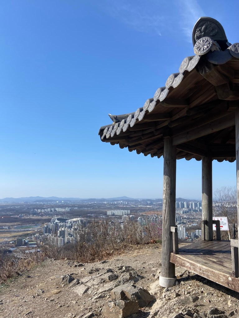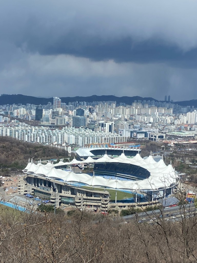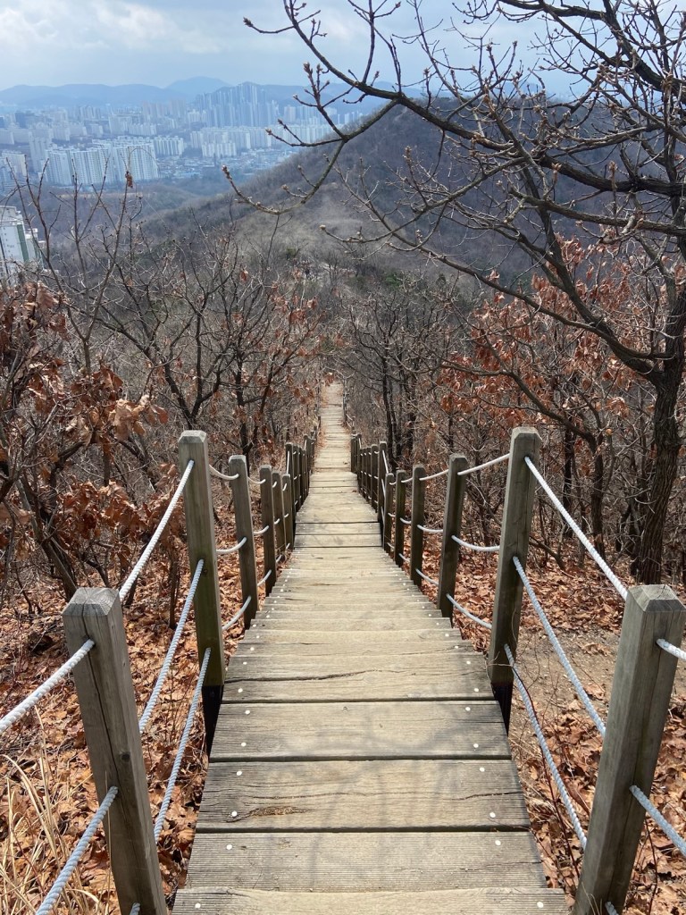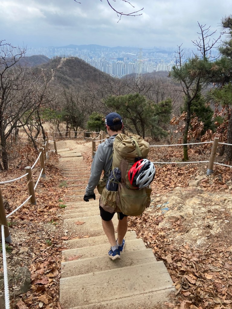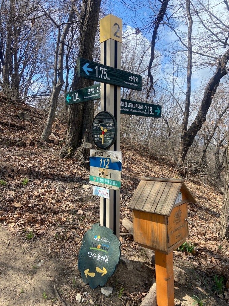 Day 3: Sunday 30 March. Today we completed 16km along course 95, starting more urban and hiking along the river before climbing up 문학산 (Munhaksan Mountain). It was pretty chilly all day with a top of 5°c again, and felt even colder at the peak when the wind picked up. Views were worth it though! After hitting our final checkpoint we had a chat to some friendly locals (팀 and 송) before having some awesome 찌게 (Korean stew) for dinner which really hit the spot 🇰🇷😋