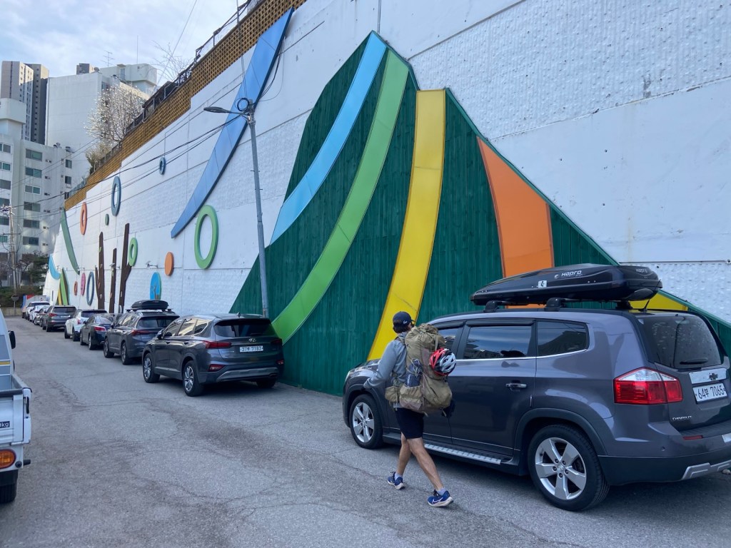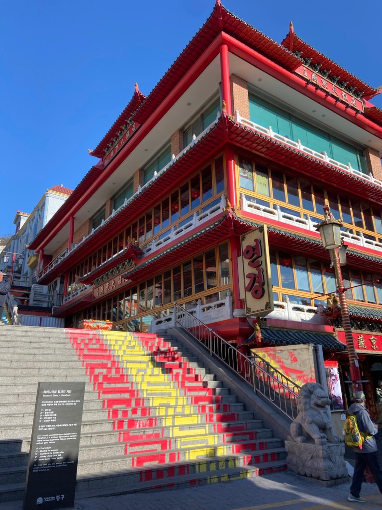 Day 2: Saturday 29 March. It snowed today! A top of maybe 5°c with some harsh winds, however not nearly as tough as yesterday with only 14.5km and two peaks to cover. The last section was more urban walking through the streets of Incheon. Came across a food market and children’s theme street nearby the local Chinatown, and what’s a trip to Korea without ending up at a random love motel 💕