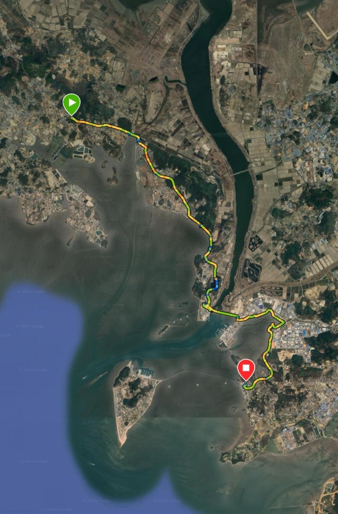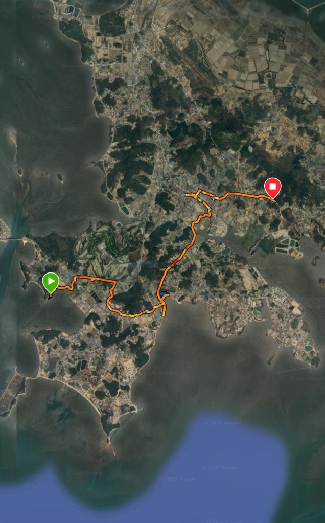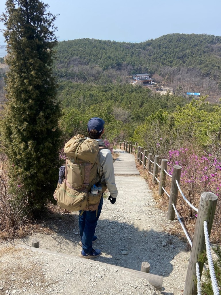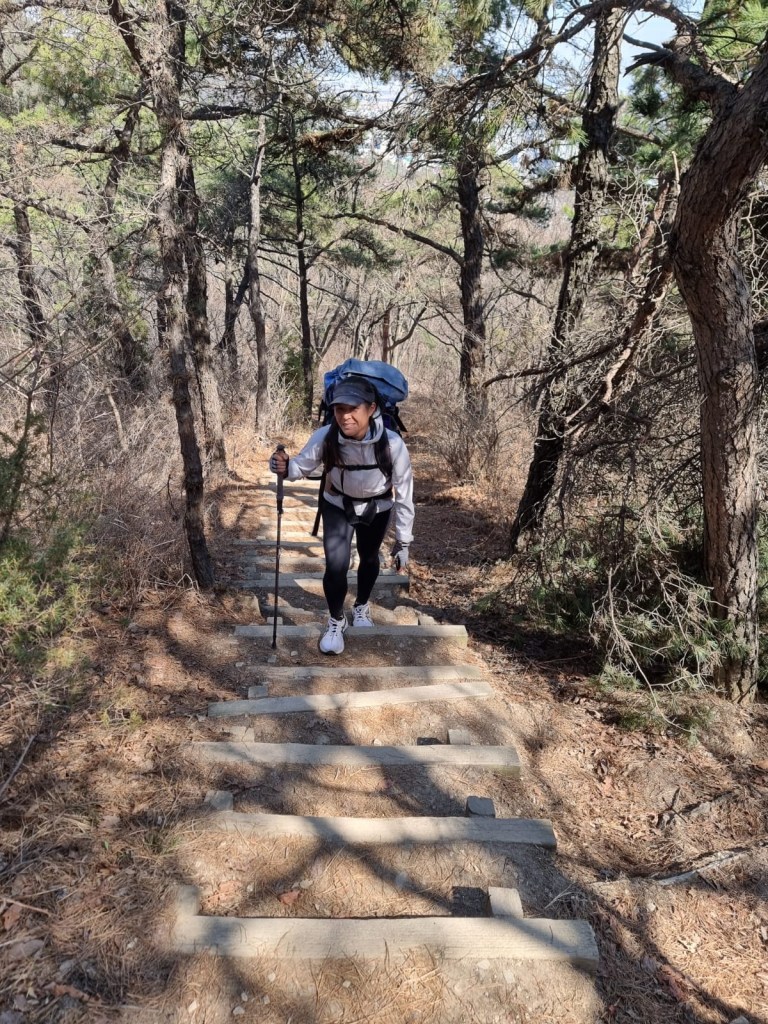 Day 4: Monday 31 March. We decided to knock out two courses today, 94 & 93, which may have been a bit ambitious as the legs were weary by the time we finished the 25km for the day. We ended up doing 340m of ascent which was a lot considering it was supposed to be a cruisy flat hike. The first half was a climb up 오봉산 (Obongsan) before stopping at a small kiosk in the park for some lunch. The second half was a straight and flat walk along the coast towards Oido, a fishing town by the water 🐟