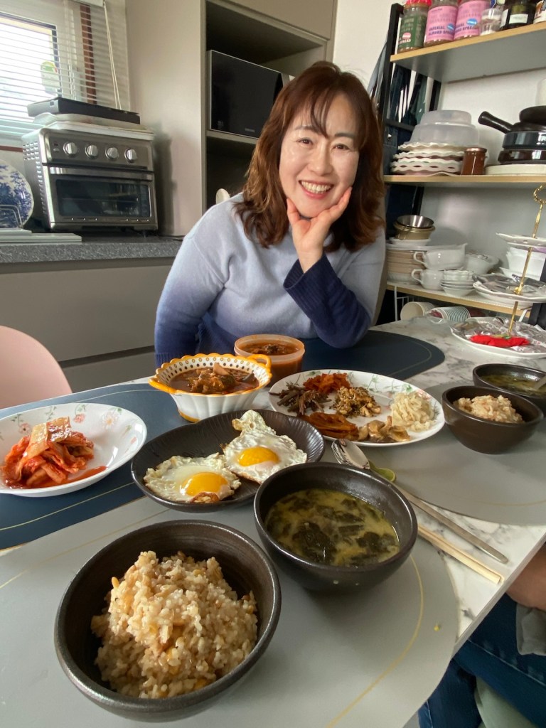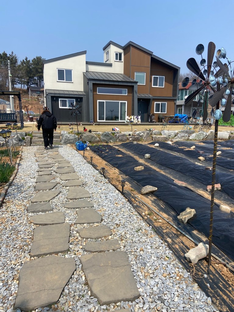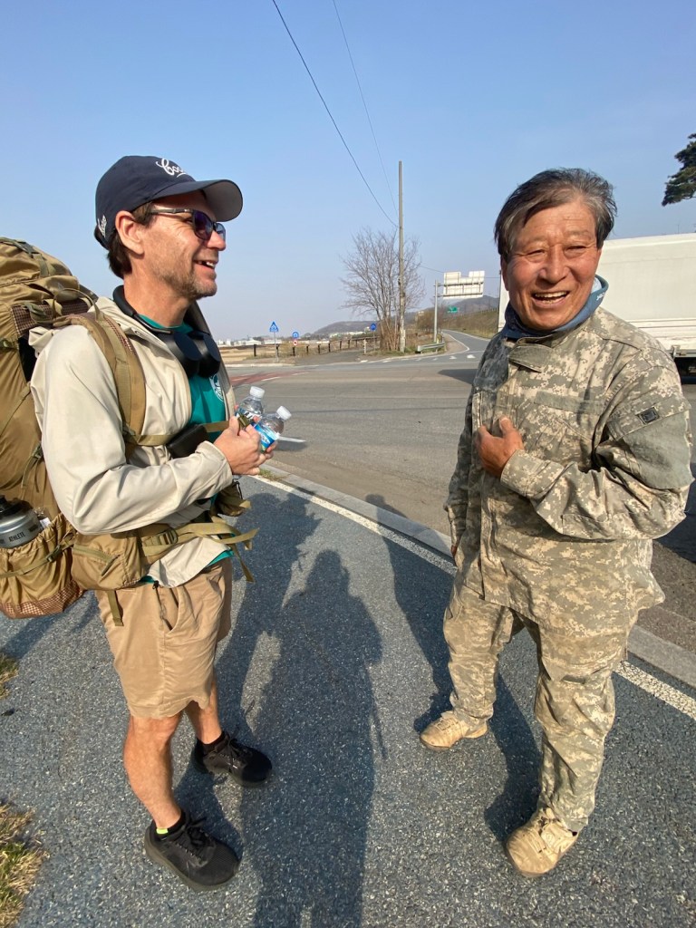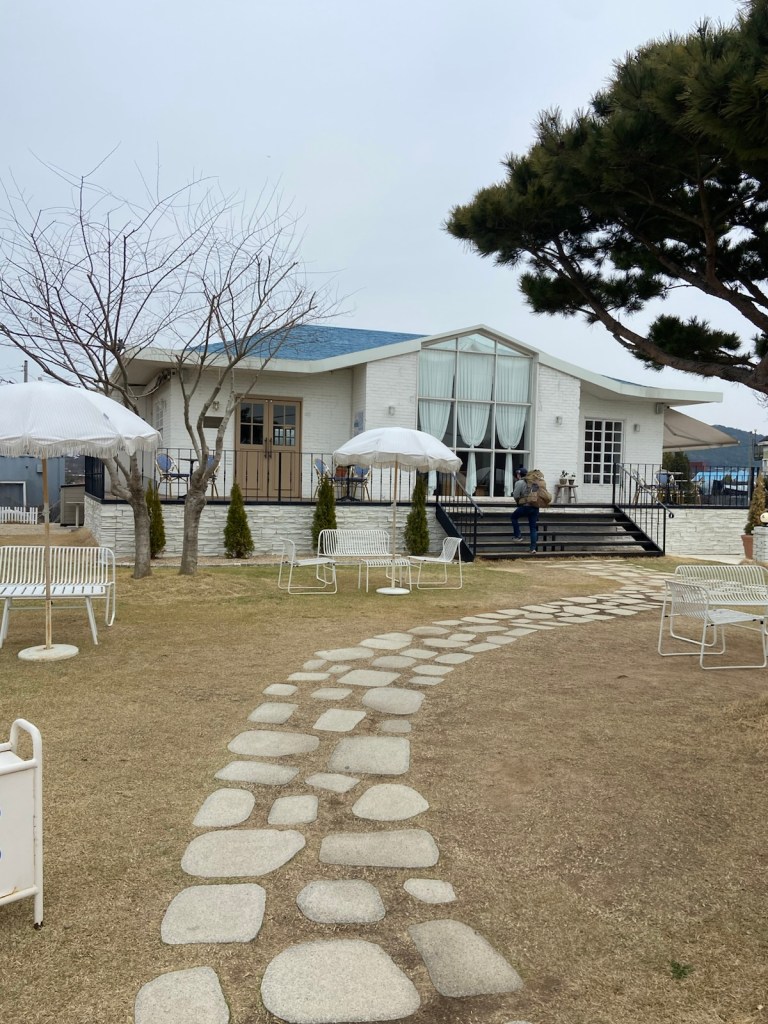Day 7: Thursday 3 April. Today started like any other day and ended up being one of the most eventful. Course 90 was a flat, cruisy 10km walk through the back streets of 대부도 / Debudo, passing by the odd cafe and barking dog. We started chatting to a lady named 미영 / Miyeong who invited us to a local cafe to try 솔트크림커피 / salt cream coffee ☕️ After a nice chat she then invited us to her house nearby where we met her little old dog Malgeum 🐕 She cooked us a wonderful lunch and we could’ve chatted with her all afternoon. We continued on looking for a coffee shop so we could whip out the laptop and do a bit of Korean study. A short walk later we found a place called Would U Like Cafe where the owner opened up the shop just for us, but instead of studying we ended up chatting to him for an hour or so (real conversation practise instead)! He was lovely and gave us a few gifts including a sachet of grape juice he used to distribute, so we gave him a small clip on koala and a card. He was so thankful he gave us a fold up lamp for our hiking travels. We continued onto our accommodation for the night, which looked like a haunted mansion from the outside and love motel on the inside 🏩