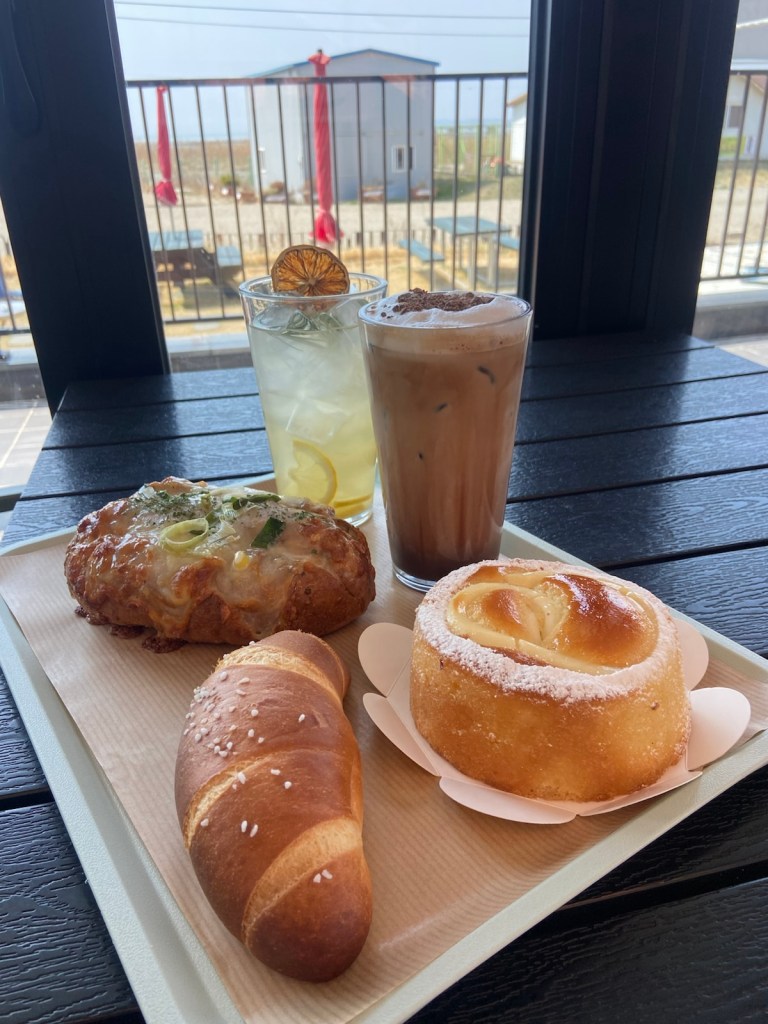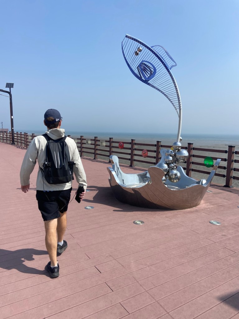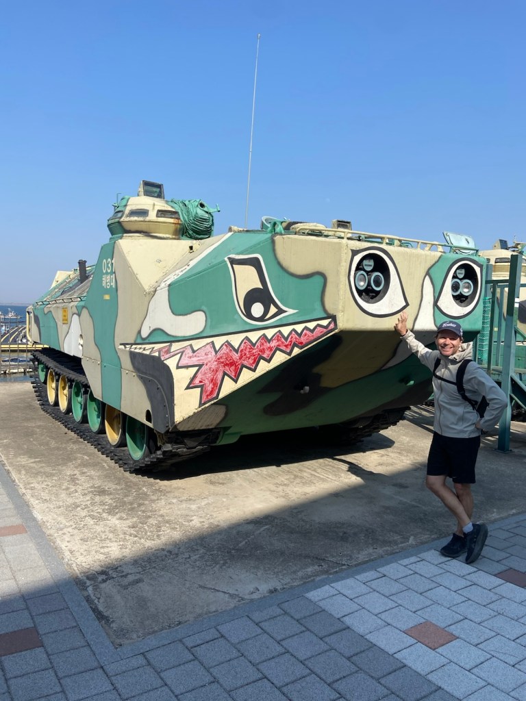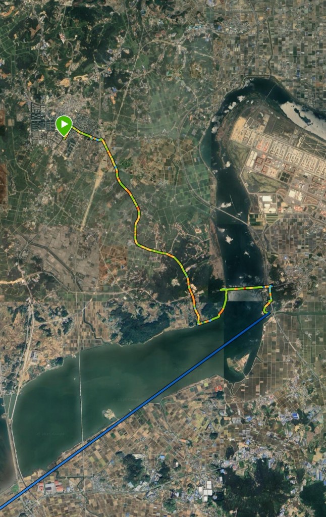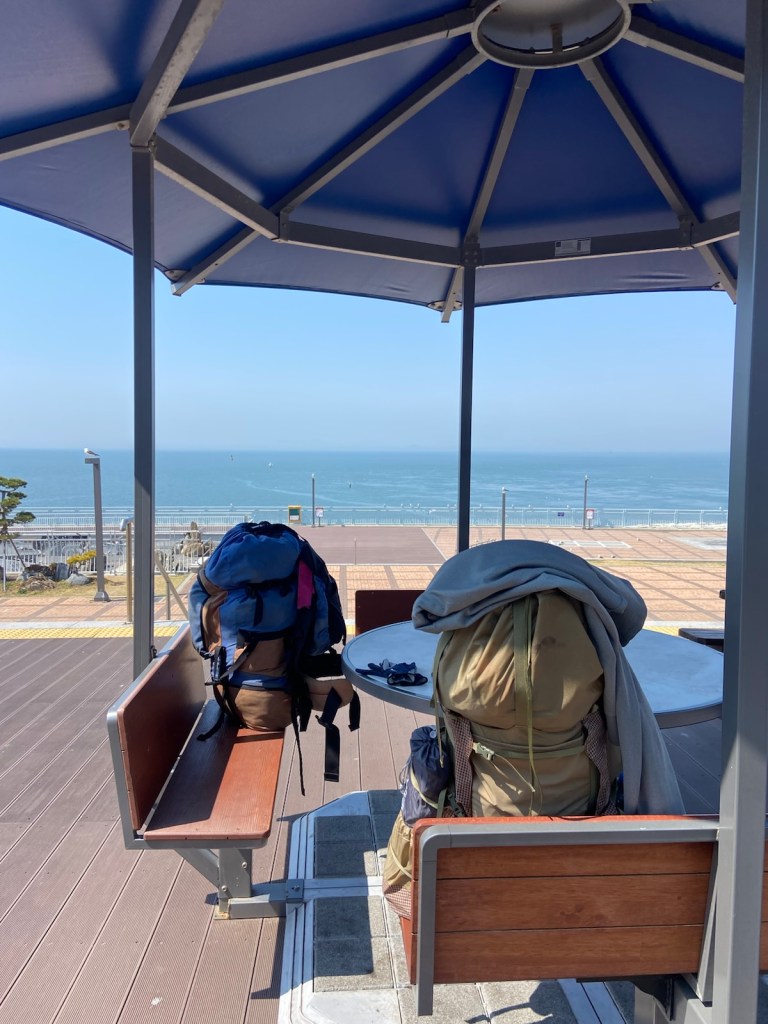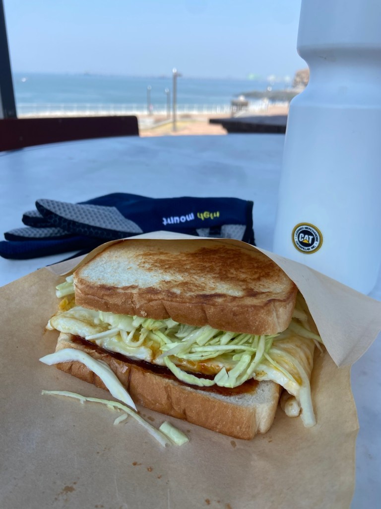 Day 5: Tuesday 1 April. Course 92 today was rather unique starting in the seaside town of Oido before heading onto 12km of dead straight road along the sea wall. It was pretty cold and windy the entire way with one rest stop in the middle where we took a lunch stop with a view of the ocean. Once we arrived at the other end it turned into a food street full of Hawaiian beach themed cafes – we stopped at one and had the greatest mango croissant ever. Finished along the beach before checking into our accommodation. Unfortunately most food places were closed while the Spring season is still warming up so it was the 편의점 again for dinner 🏪