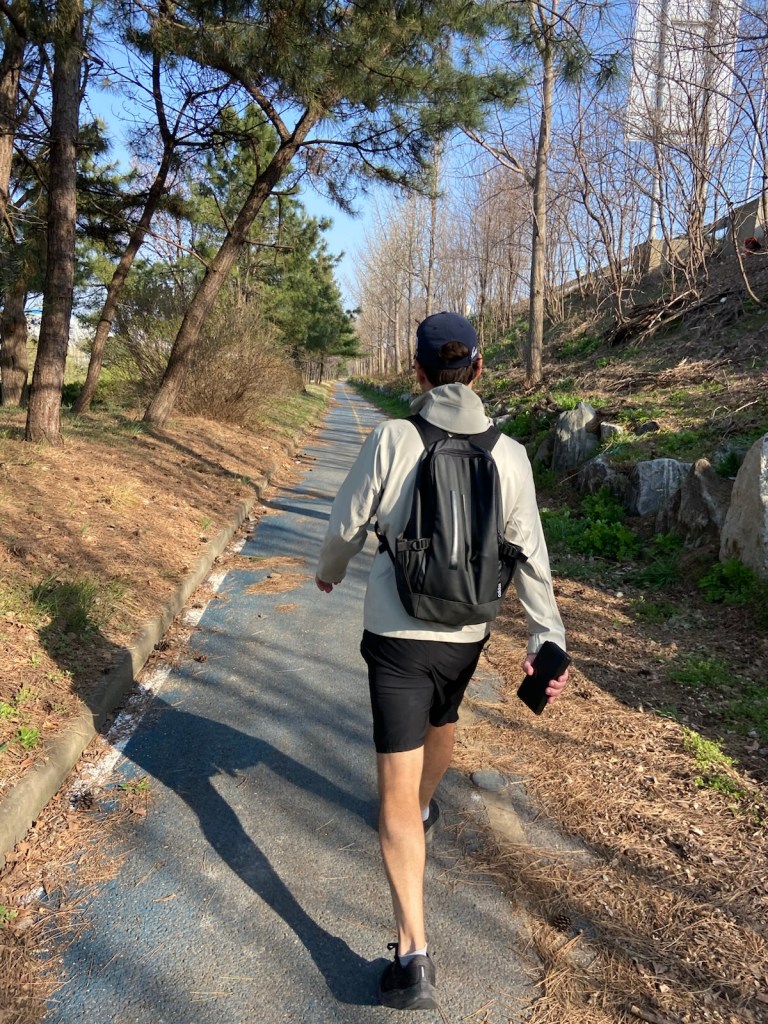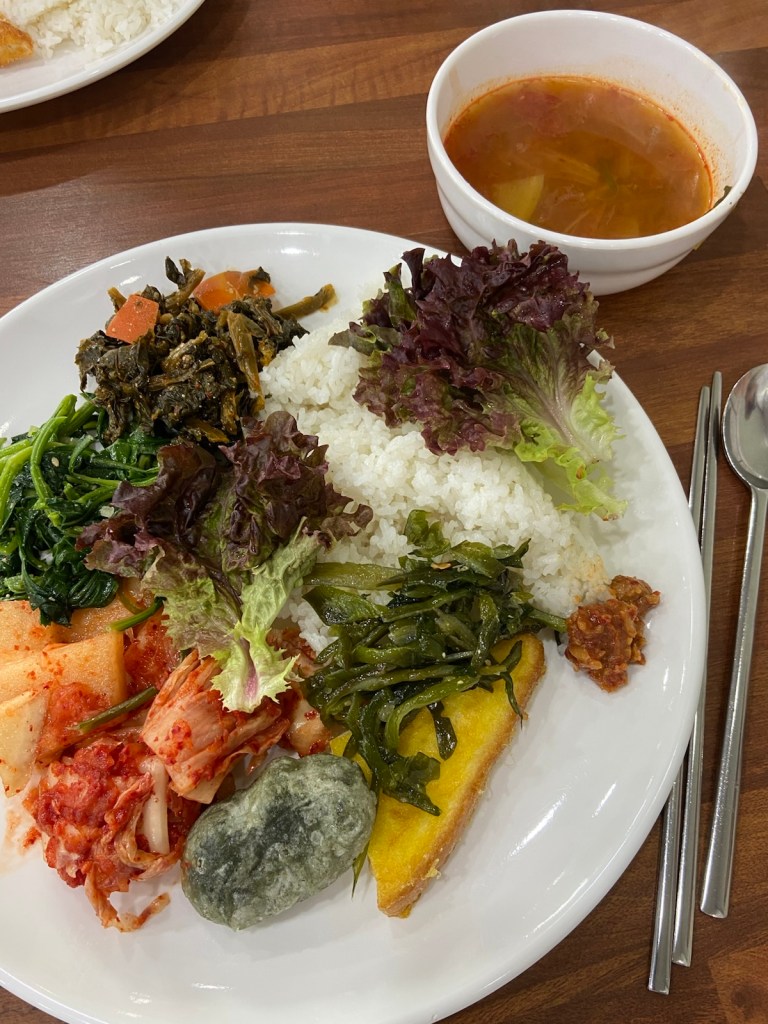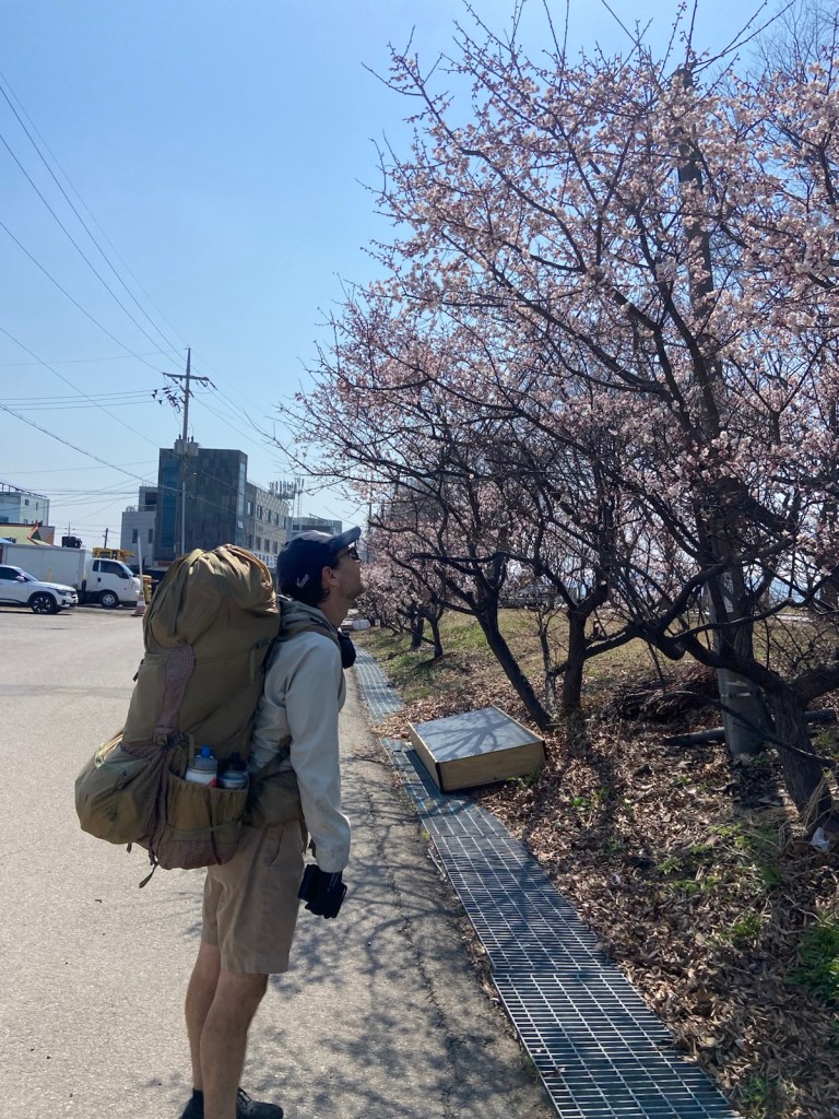 Day 10: Sunday 6 April. It was a perfect day for hiking today, made even better as we had company! Our friend Junsik joined us for the day for almost 20km along courses 87 & 86. We hiked along the coast, roads and backstreets, visiting a temple and even spotted the first cherry blossoms blooming 🌸 We made a few more stops than normal for morning tea, lunch and afternoon tea before checking into our hotel. Before dinner we took a walk to Sindang Neighbourhood Park then headed to a Korean buffet place, whose normal clientele is solo male construction workers in the area. The vibe is quite surreal seeing workers come in and eat alone in silence before leaving. We finally bid farewell to Junsik so he could catch his bus home. Thanks for joining us Junsik! ☺️