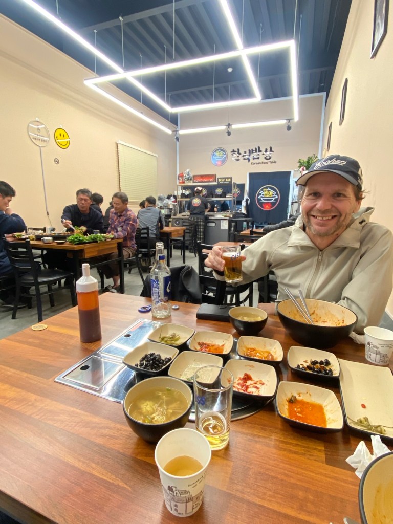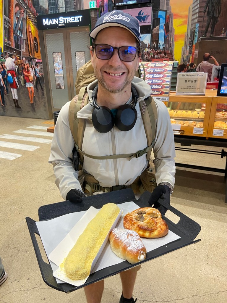 Day 11: Monday 7 April. The plan today has been to knock out three courses (86,85,84) but turned into a bit of an adventure. We started by heading to Main Street, a unique, multi-level food experience with amazing bakery on the bottom level, and other food services in the upper levels 🥐 The bread was awesome and we could have easily spent half the day there but there were trails to be hiked. We caught the bus part way and ended up walking the other 7km because our second bus was an hour wait. We continued hiking along the course to get our checkpoints, including Pyeongtaek International Daegyo, which is quite a big bridge. At the end of the course we were about to start the next one when we started chatting to an Ajushi. He told us about his cycling adventures and after a nice chat he offered to drive us to our motel. We still had a few more check points to hit but would have been rude to turn him down so we accepted. There was a bit of confusion along the way but we eventually made it despite having to backtrack along course 84 now. All good, we got to our motel and even found another buffet for dinner where we had the whole restaurant to ourselves! 🥗