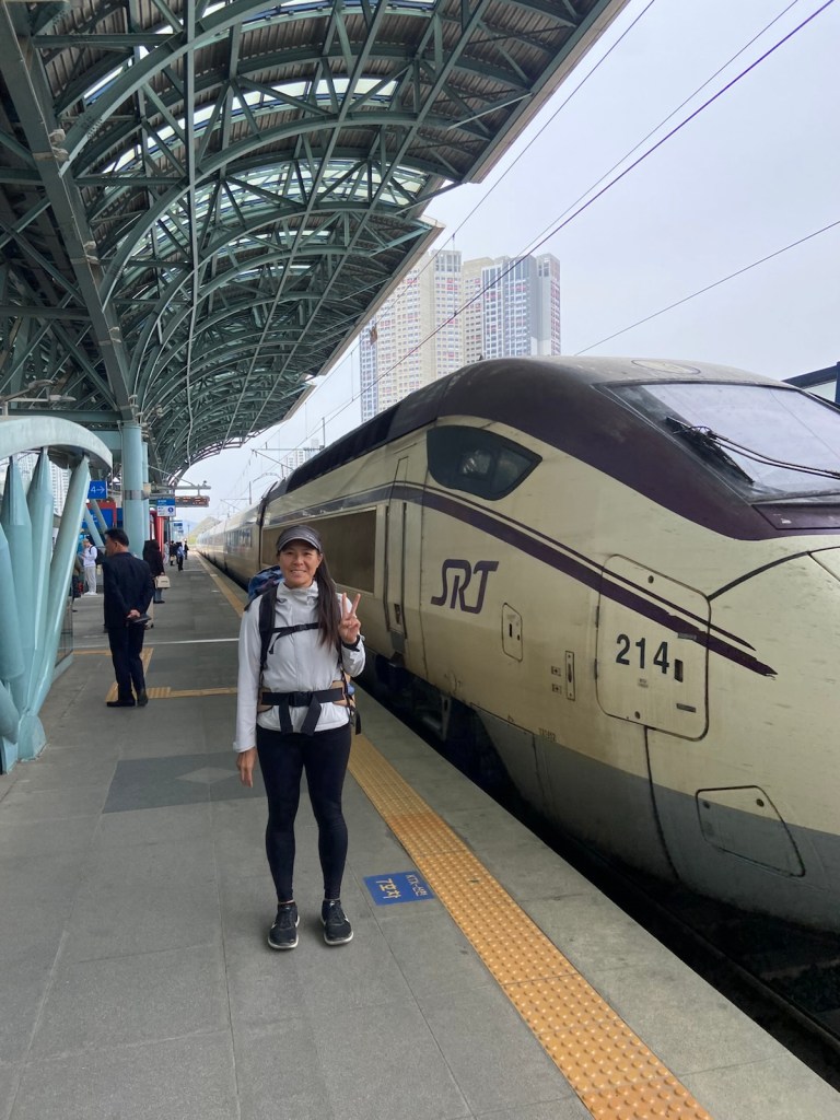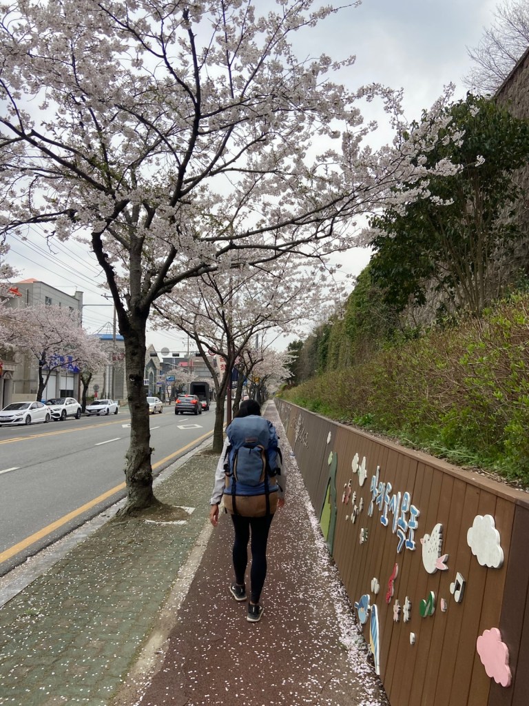 Day 13: Wednesday 9 April. Hello Mokpo! We have decided set up a base for the next week so we don’t have to hike the trails fully loaded. After missing course 84 the other day due to 아주시 (Ajusji) wanting to drive us to the motel, we decided to hit the check points by running the 10.5km course 🏃🏻♀️ It was actually really nice not having to run in 40° heat like we’ve been doing for the past 5 years in WA. We then took a bus and two trains to Mokpo, which included the SRT train. Public transport in Korea is so good, especiallly the high speed rail 🚆 The journey takes sbout 3 hours and on arrival we decide to walk the rest of the way to our accommodation, and it’s such a pretty walk with the cherry blossoms in full bloom 🌸 Our base for the week is called ‘Luxury Hotel’ and it has to be one of the best (if not the most novelty) love motels we’ve ever stayed in. We finish off with some 비빔냉면 bibim noodles for dinner and a visit to Lotte Mart Maxx, which is like a Korean Costco!