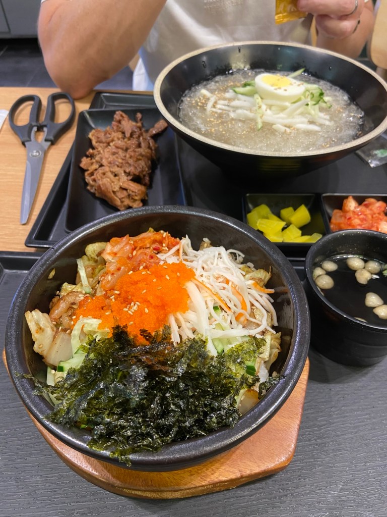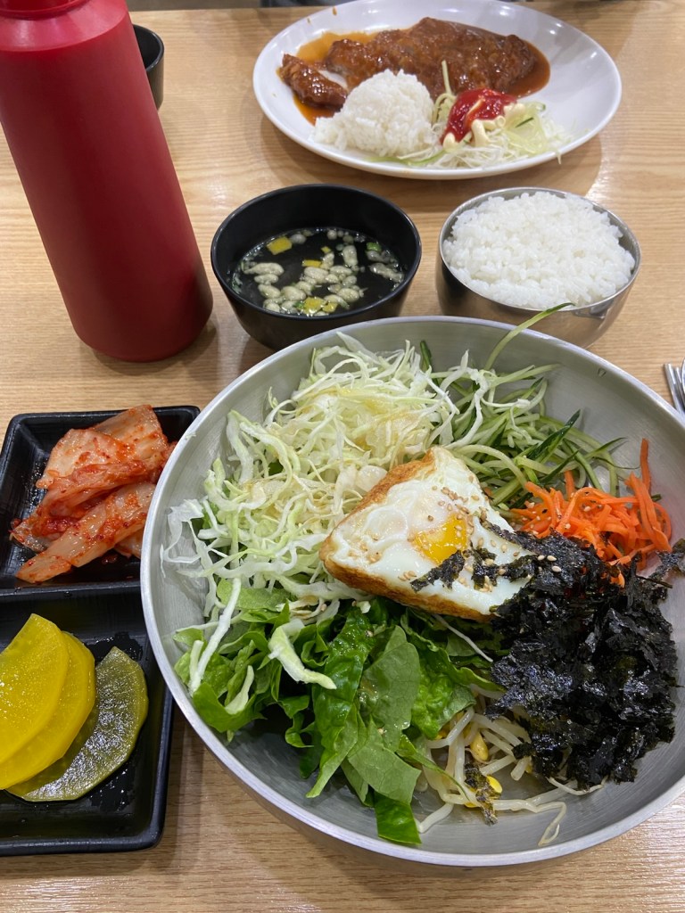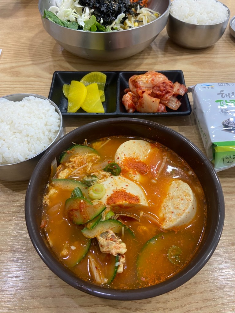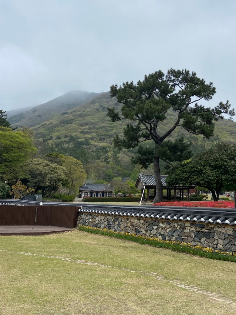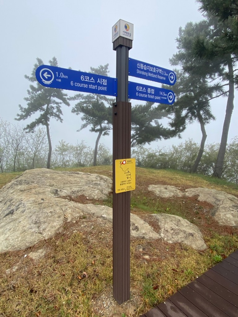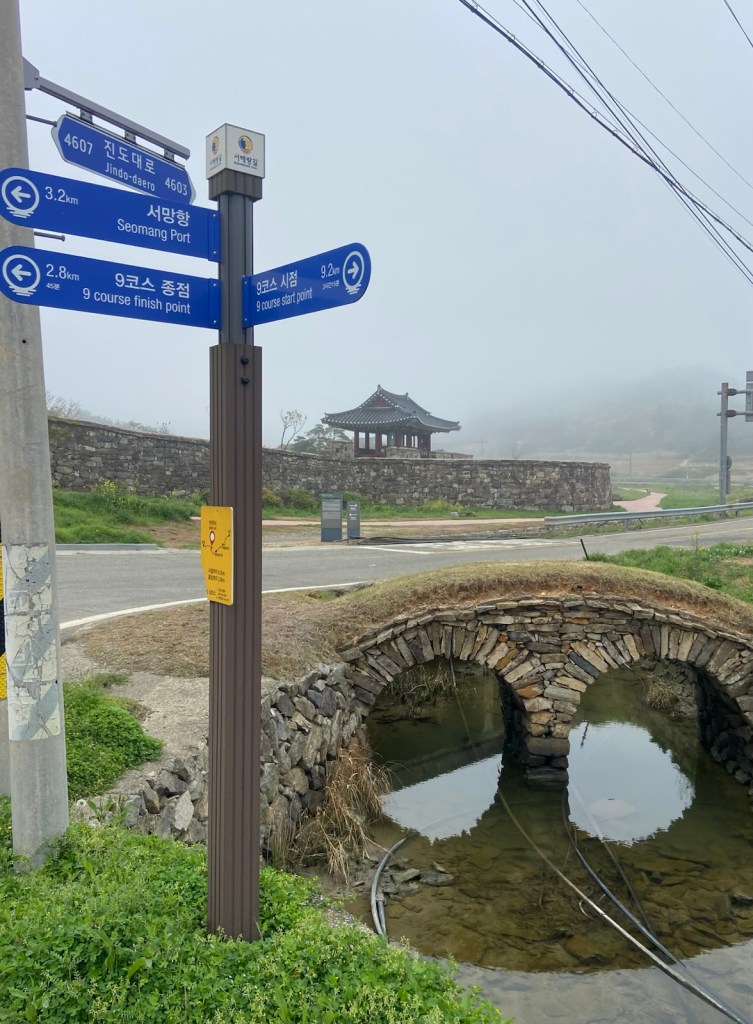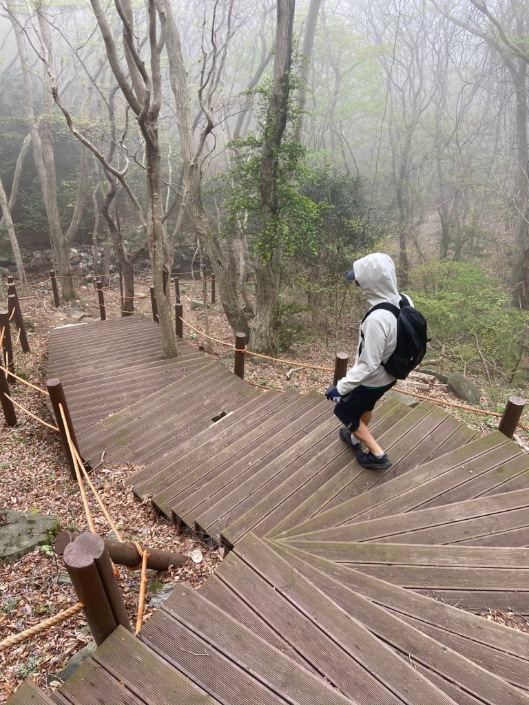 Day 22: Friday 18 April. We are getting used to catching these regional buses now, which can be a little tricky to figure out due to the infrequent timetables and unnumbered buses 🚍 Today we completed 20km along courses 9 and 10, encountered lots of growling dogs and passed by quite a few hikers too which haven’t seen a lot of until now. It was extremely misty throughout the day, making the trails appear quite eerie. Most of the course was along the coast which was quite enjoyable, passing a ferry terminal and even an old fortress ⛴️ Finished with a very cool trail which we renamed the ‘roller coaster trail’ because of all the erratic twists and turns 🎢 After getting the bus back to town we had a traditional Korean dinner of 순두부찌개 soft tofu stew and 비빔밥 bibimbap 🍲