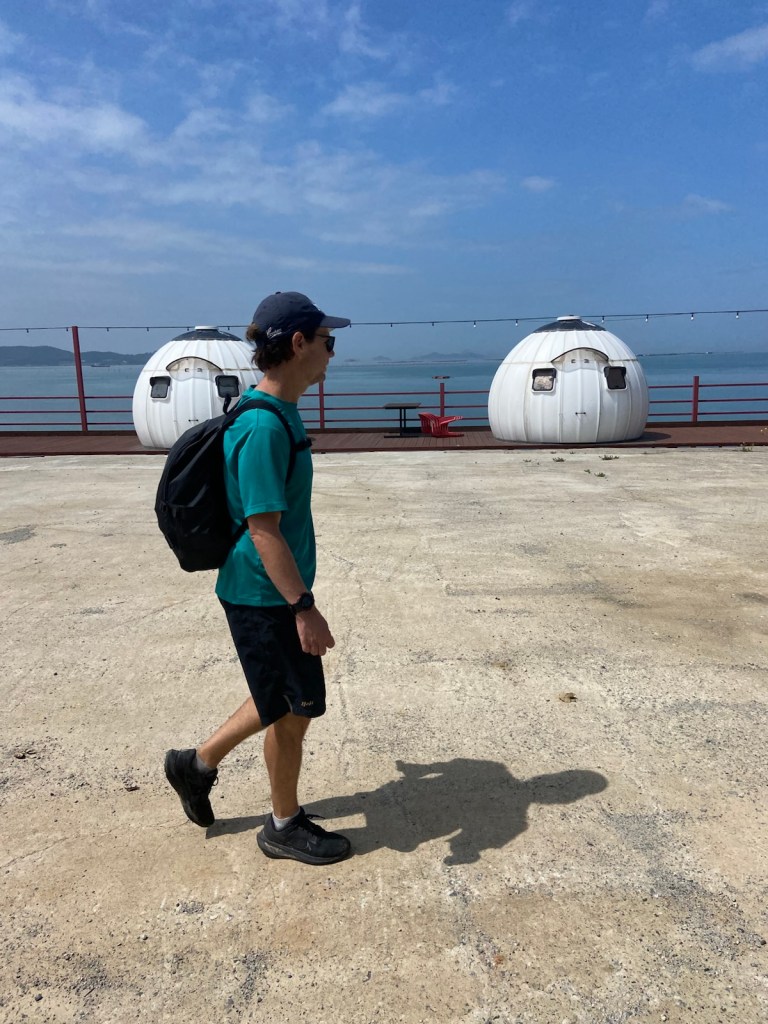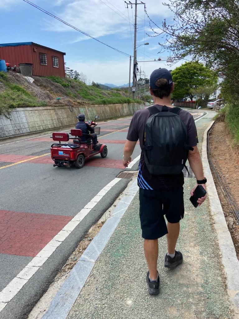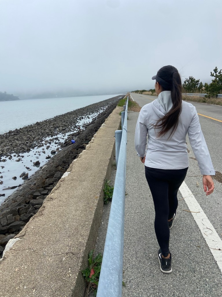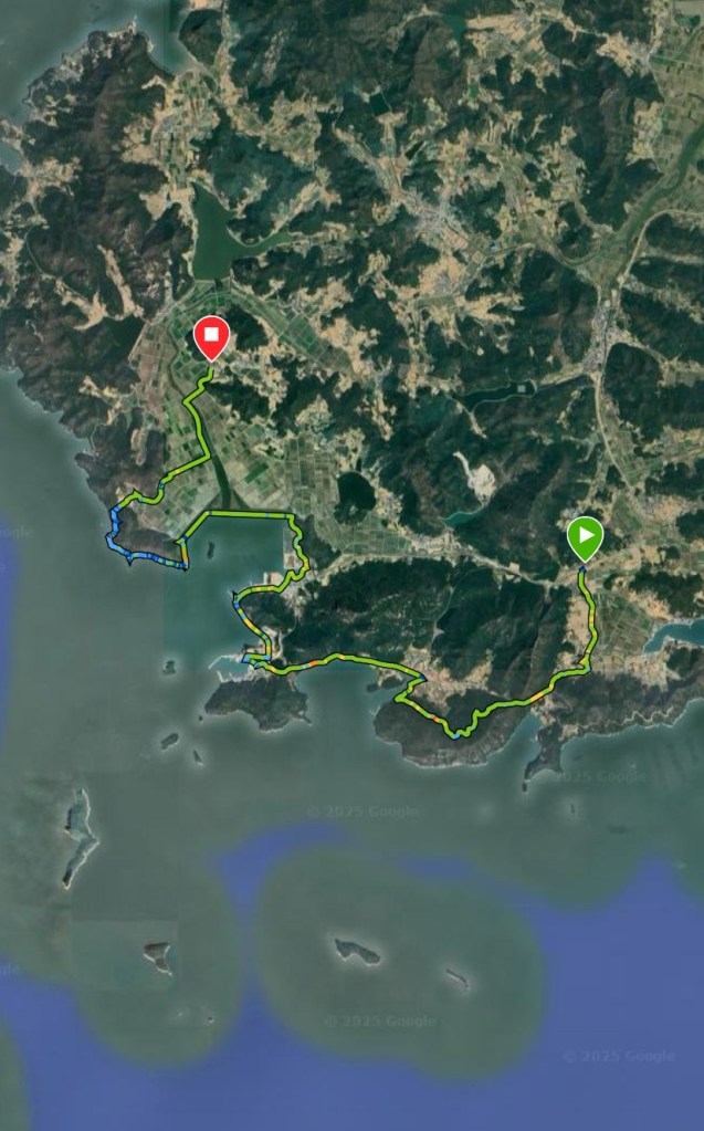 Day 23: Saturday 19 April. It was forecast to rain in the afternoon so we made an early start to complete courses 11 and 12. We did about 15km which took us along the western part of the island with views of the many islands just off the coast of South Korea 🏝️ There was a lot of farmland with many locals planting their crops for the new season. It was really misty and windy in the morning but became quite warm and humid towards the end. We dropped into a cute seaside cafe called ‘Front Cafe’ before catching the bus back to town. And of course, it didn’t end up raining until we were walking back from dinner! ☔️