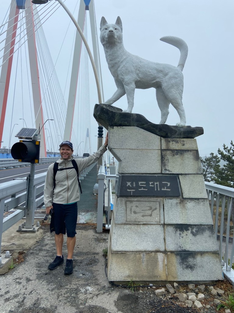 Day 21: Thursday 17 April. Hello from Jindo, the third largest island in South Korea and home to the native Jindo dog 🐕 On our first hiking day here we caught the rural bus, which was full of locals no younger than 75 years old. We completed 18.3km along courses 7 and 8, which included 486m of elevation, tons of wind, and misty views of nothing at the mountain peak ⛰️ Had to get the hiking sticks out climbing down Cheomchalsan Mountain which was pretty steep and slippery. Caught another local bus back to Jindo town (this time full of foreign male workers) for a some Korean dinner 🍲