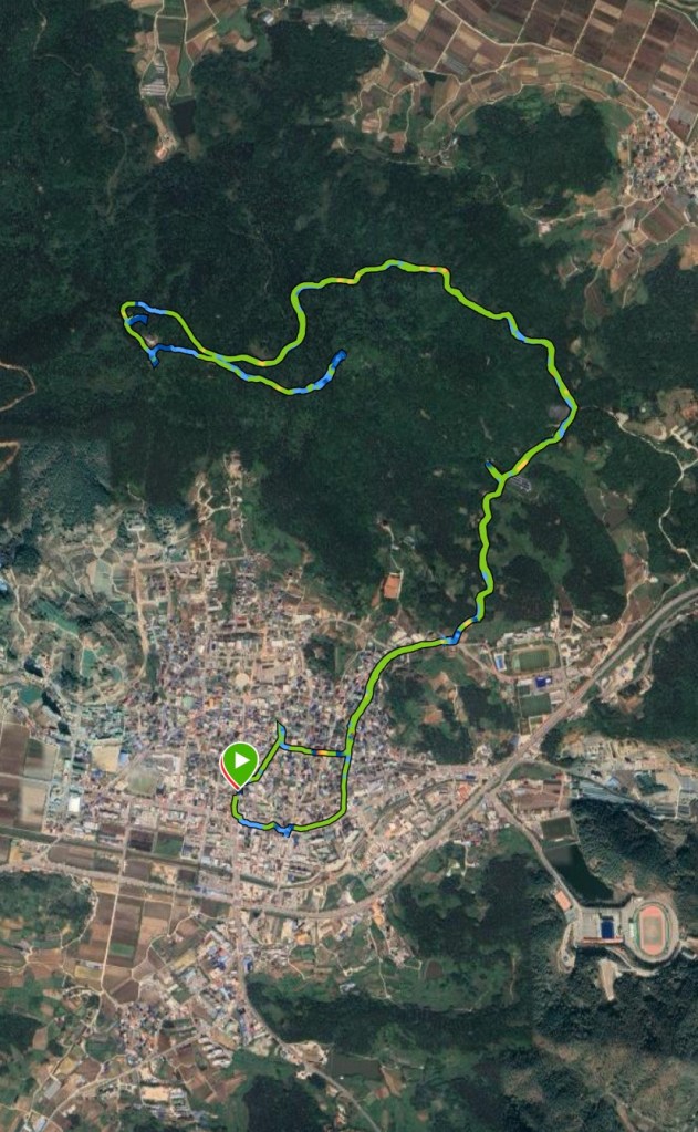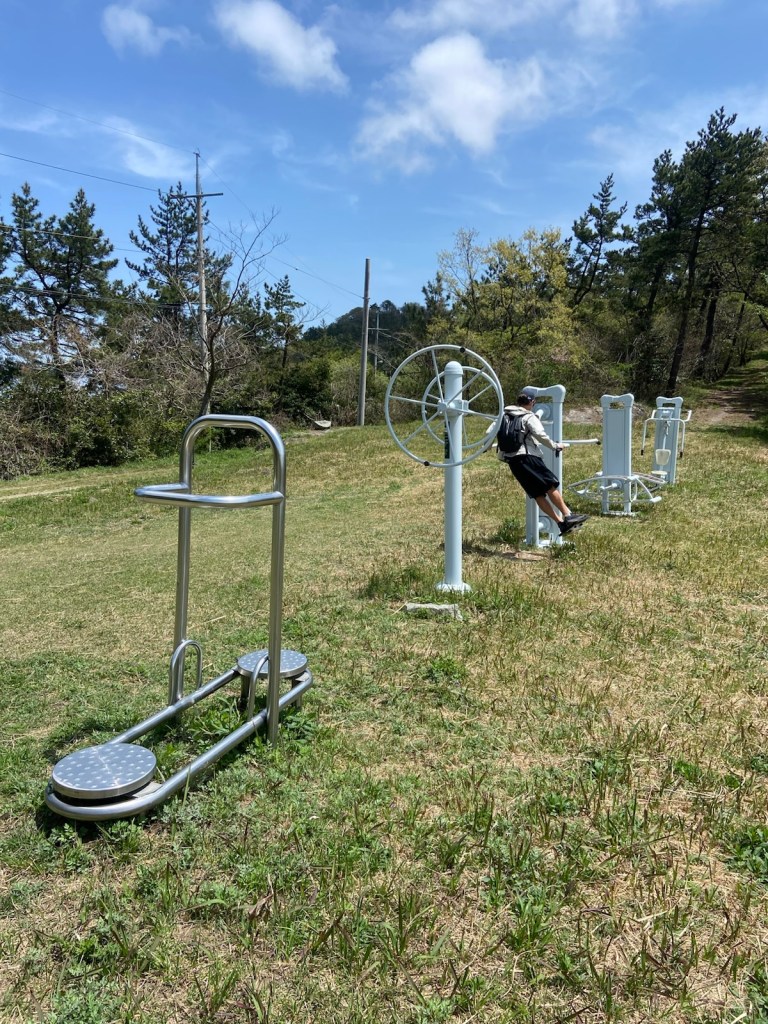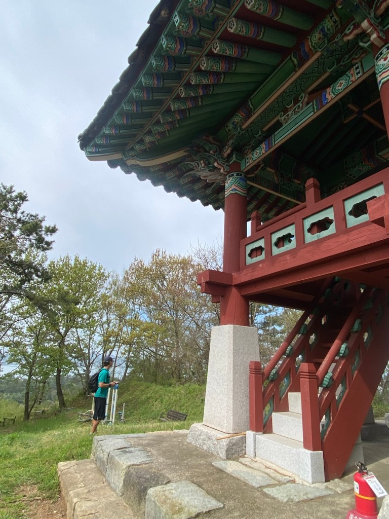 Day 25: Monday 21 April. We took a day off from the Seohaerang Gil courses to trek some of the nearby Jindo mountains, namely Cheolmasan and Buksan Mountains ⛰️ We did a 12km loop which took us through town and around the back trail, leading us to a small valley between the two mountains that had exercise equipment with a view. Cheolmasan is the higher of the two at 304m (but only by 5m!) but the view from Buksan was far nicer, so we sat there for a while to have lunch, enjoy the scenery and tried spotting all the different landmarks from above 🏫
