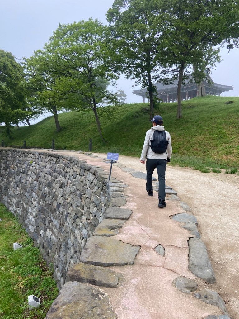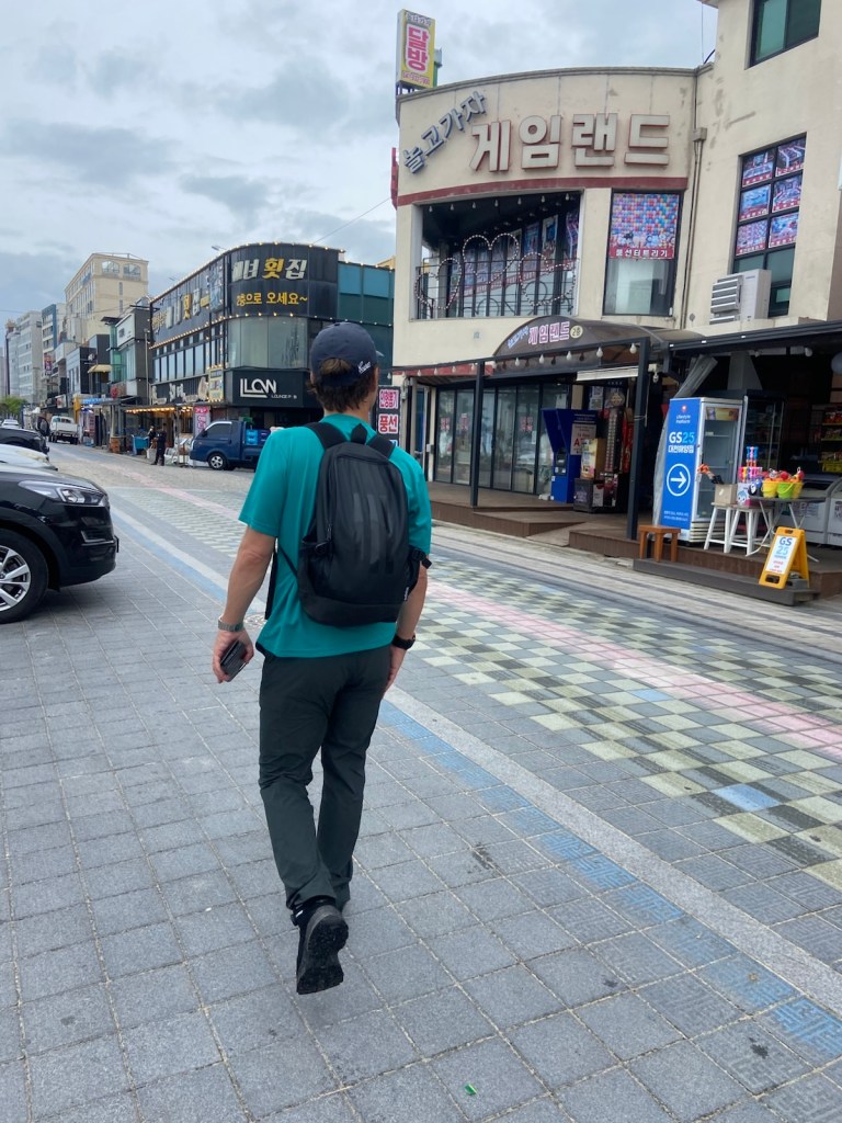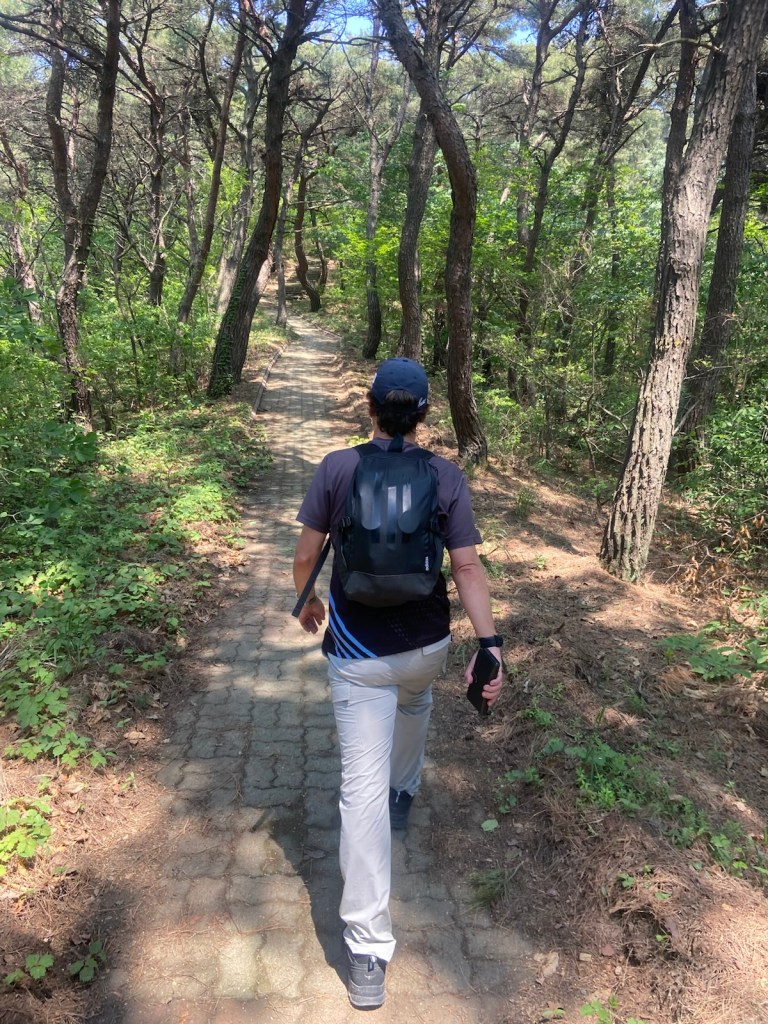 Day 49: Thuraday 15 May. We wake up to the sound of thunder and heavy rain but it eases off as the morning goes on ⛈️ We start by catching a bus and then a train to the town of Boryeong, although the train station is called Daecheon. Korean trains are so nice to catch, even the older 무궁화 trains are very comfortable 🚆 Very misty today but hopefully the rain will hold out. We hike a quick 11km along courses 61 & 62. Yesterday was a pretty long day so our legs appreciate the shorter course. The first course 61 is mostly main road so nothing exciting but course 62 takes us past fortress walls, temples and nice ocean views. It takes us about two hours to finish the courses and we have a bit over an hour until our bus arrives so we pop into a nice nearby cafe to pass the time ☕️ When we finally catch the bus we see another hiker jump onboard we had passed earlier who had yelled out hello to us. For dinner we head to a local bunsik and also the giant Emart to stock up on a few things as we will be staying in Boryeong for two nights 🌙 It will be nice to not have to change accommodation tomorrow after four straight days of catching buses to a new city each day!