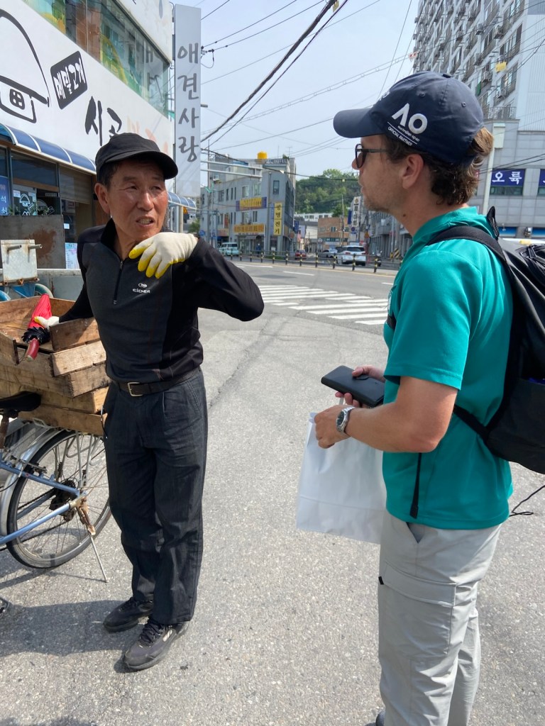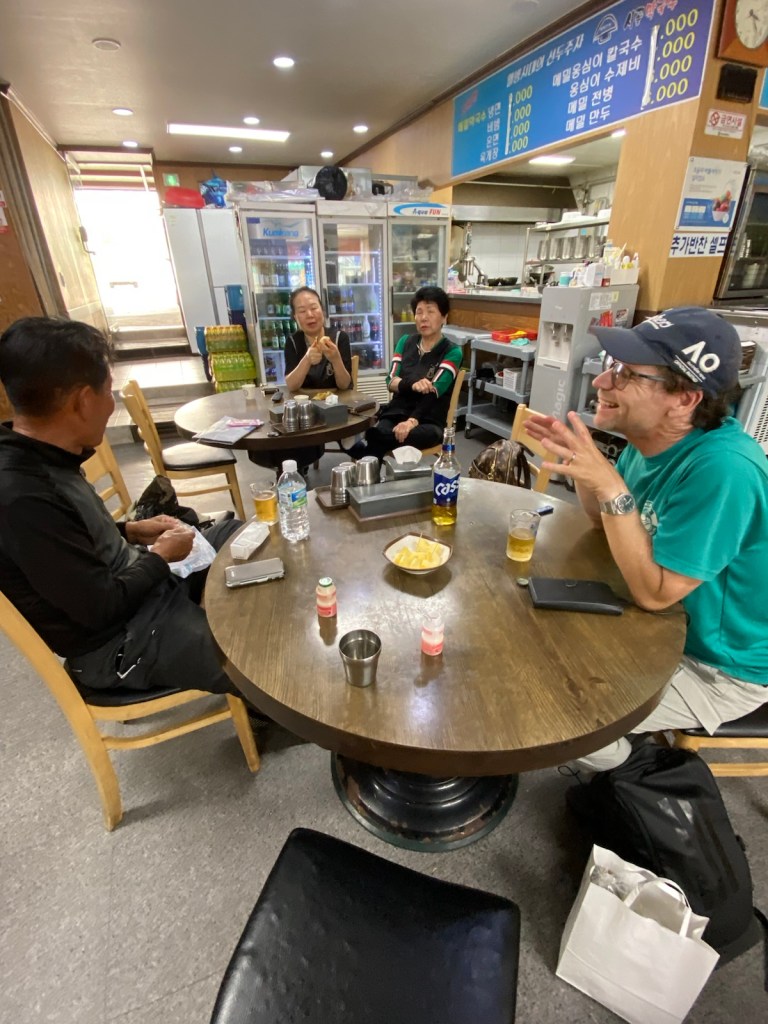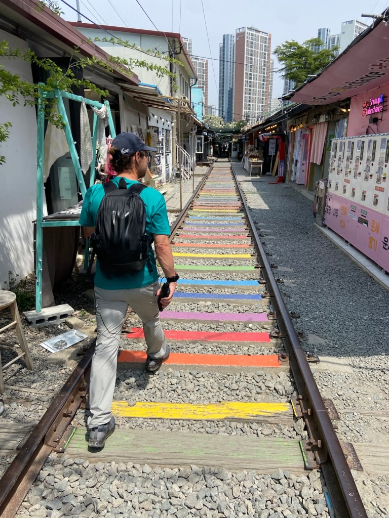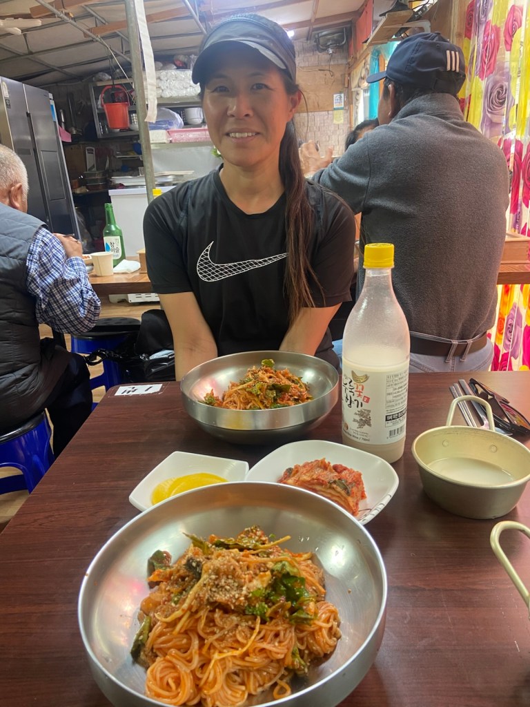 Day 47: Tuesday 13 May. Another warm day, and only meant to get warmer as the week goes on ☀️ We catch the intercity bus to Gunsan which takes about 50 minutes, then do our usual ‘dump and run’ where we drop our bags off at the hotel before heading to our next course. We hike around 20km through Gunsan city along courses 53,54,55. Start on some trails around Cheongam Mountain before covering a bit of farmland and heading into the big city ⛰️ We have been to Gunsan before during one of our cycling trips and recall visiting the very popular Lee Sung Dang bakery, so we plan to stop by again. The place is always extremely busy, and even on a Tuesday afternoon it’s quite hectic with many people buying trays and trays of their famous buns 🥯 We continue onto course 55 which takes us along the coast and through a very cool railroad village before heading back via another bakery. As we wander to our hotel we are stopped by an Ahjussi who is so excited we can speak Korean he invites us into his sister’s restaurant for a beer, which is also the Guksu place we were planning to go for dinner. After a chat, our mate tells to wait a moment and pops out, but after waiting 10 minutes we have to ghost him so we can check into our hotel. We head back for dinner a bit later and the noodles are really good 🍜 Gunsan is massive so we take an evening stroll towards the main drag and Lotte Mart. You know you’re in a big city when the regional Hanaro Marts are replaced by giant Lotte Marts! 🏙️